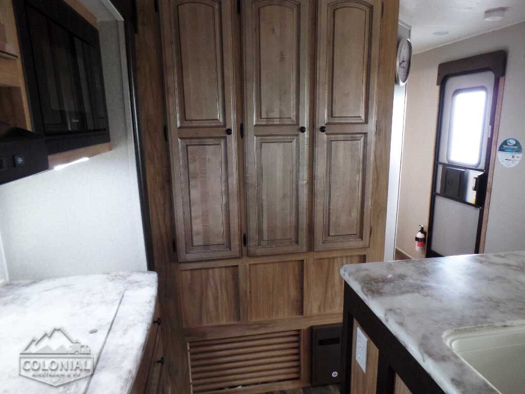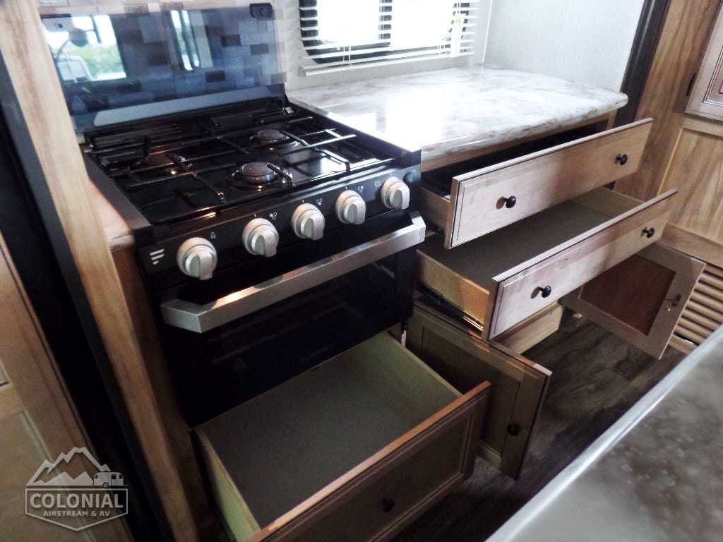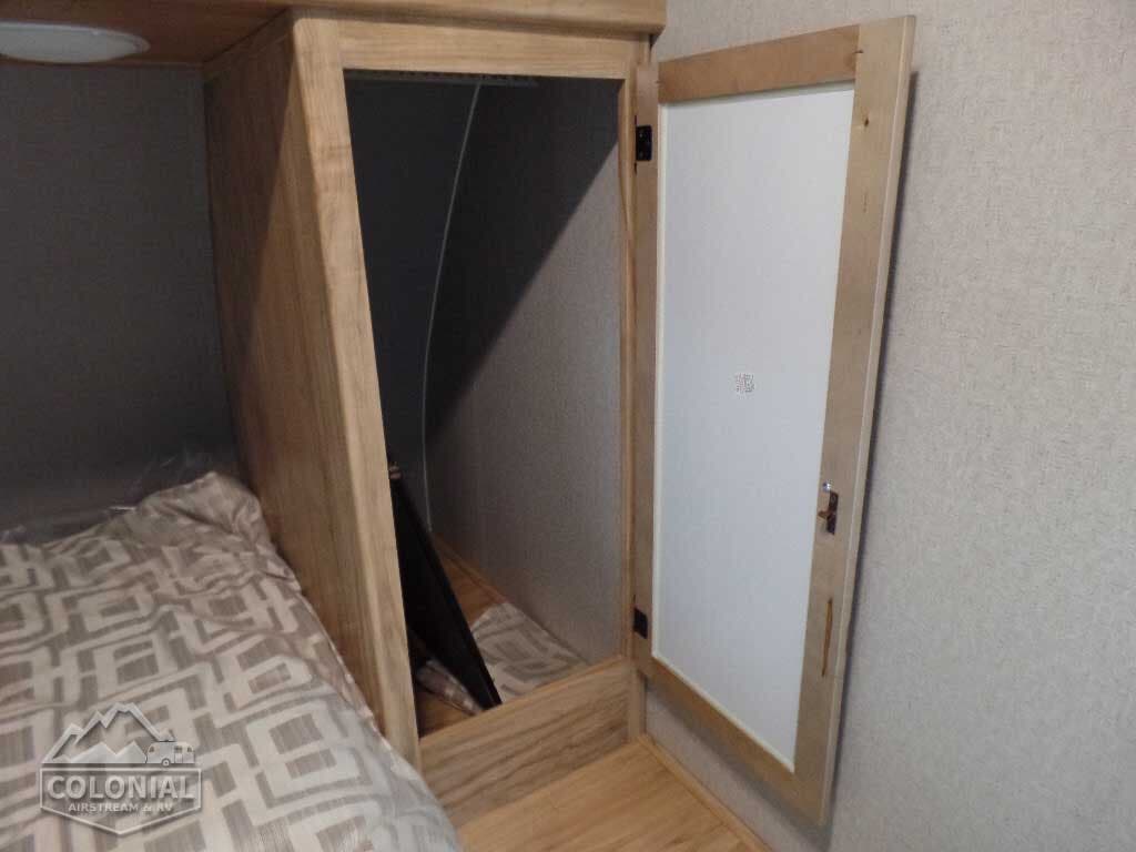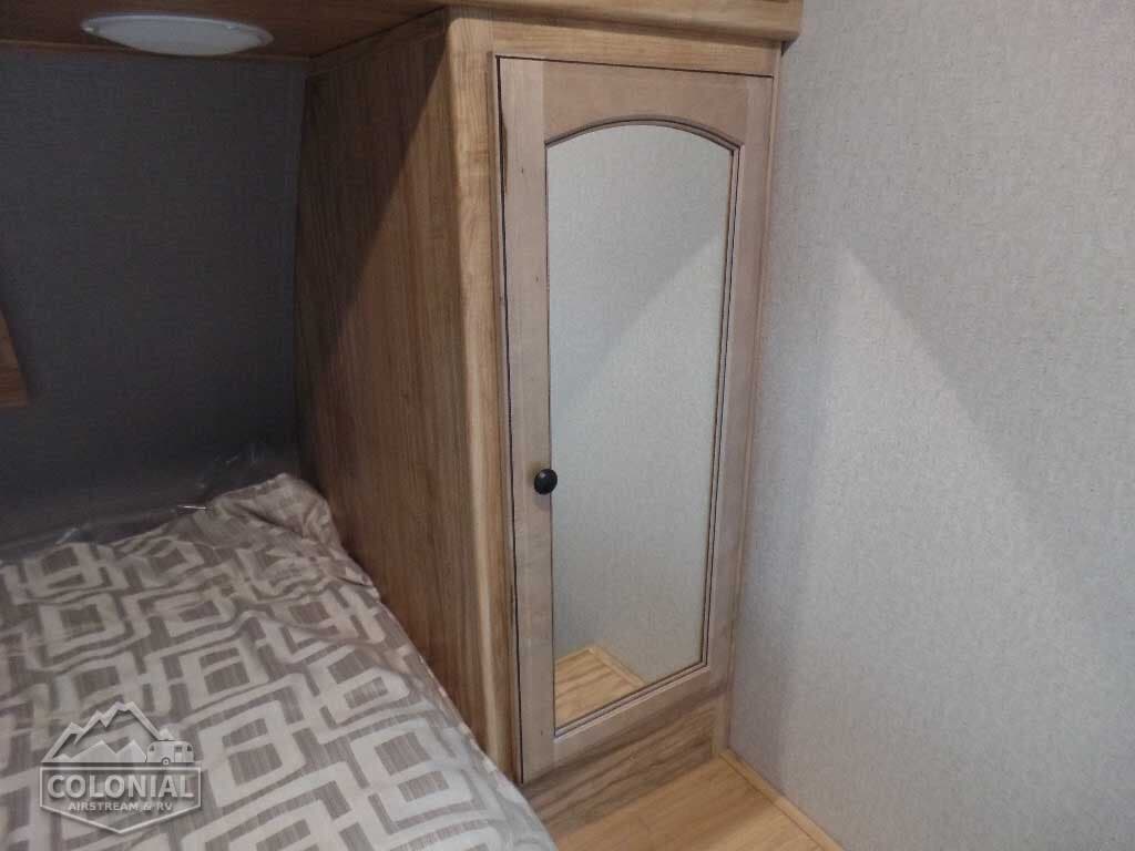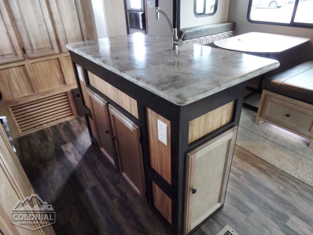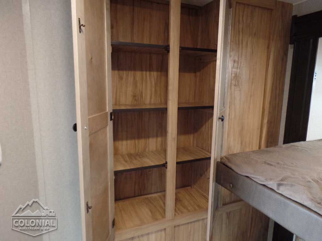 ¾ Gel Coated Fiberglass Front Cap with LED Lights • Aluminum Wheels • Spare Tire Kit • Detachable Power Cord • Electric Power Awning w/ LED Light Strip • Magnetic Catches Compartment Doors • Tinted Safety Glass Windows • Front Diamond Plate • TV & Radio Antenna with Booster • E-Z Lube Axles • Spread Axle Design* • 13,500 BTU Roof Air Conditioner • Heated Enclosed Underbelly* • Solar Port • XL Folding Entry Assist Handle • Exterior Shower Station • Winterize Ready Kit • Black Tank Flush • 2 Exterior Speakers, 4 Interior Speakers • Ducted Furnace* • Ducted Ceiling Air Conditioning* • AM/FM/CD/DVD/Bluetooth Receiver • LED TV • Satellite Ready • LED Interior Lighting • Night Shades • Congoleum Designer Carefree Flooring • Mortise and Tenon Cabinet Doors • Stonecast Sink • Sink Covers • Microwave • Oven with Glass Top 3 Burner Cooktop • 6 Cu. Ft. Two Door Refrigerator • Silverware Drawer** • 60” x 80” Queen Bed • Skylight in Bath • 12” LED Step Light • LED Light Strip in Pass-through Storage • 24” x 48” Resin Outdoor Table • USB Ports in Master & Bunk Rooms • Porcelain Foot Flush Toilet • Backup Camera Prep • Battery Quick Disconnect •RVIA Seal
