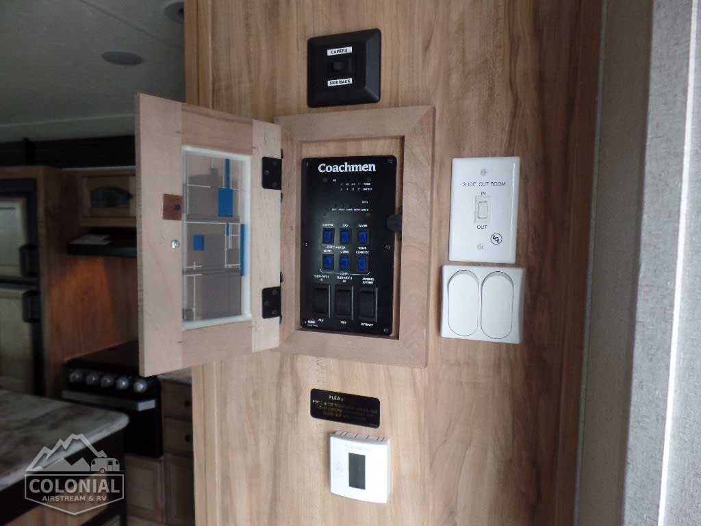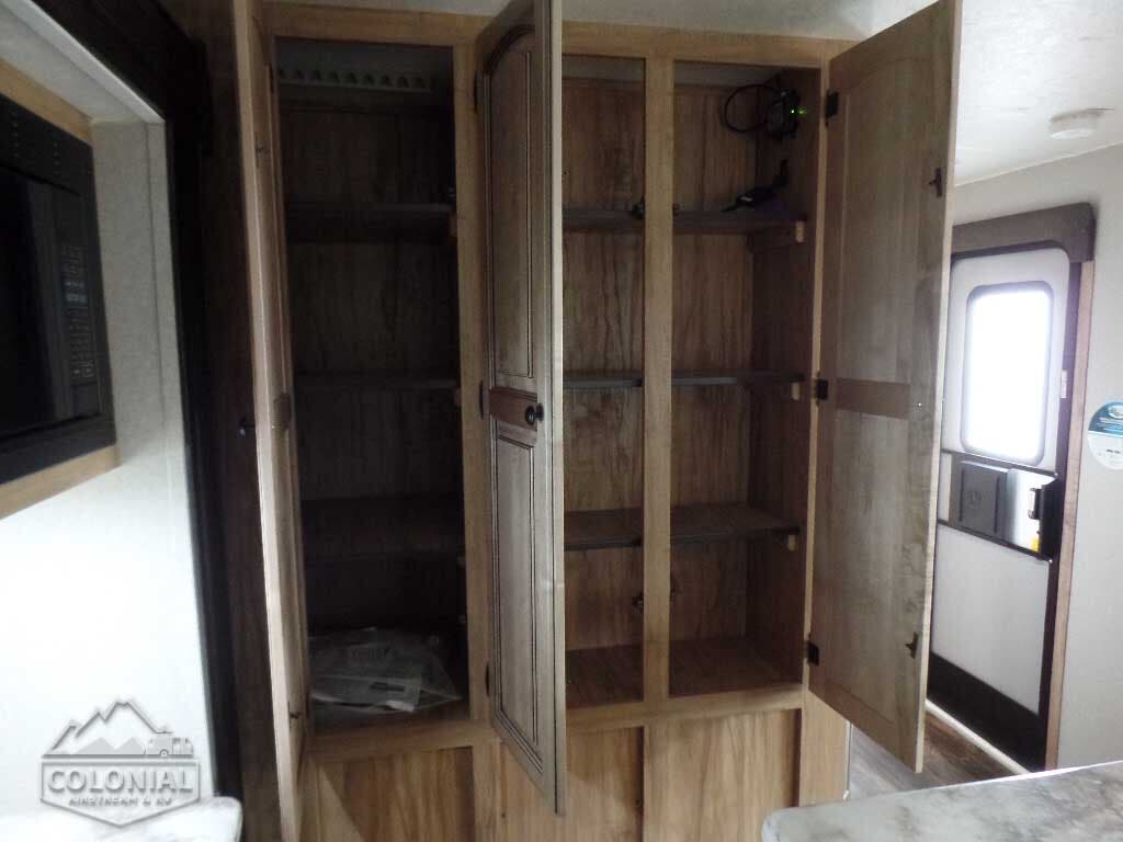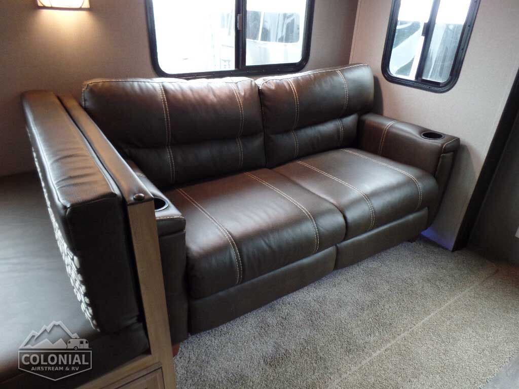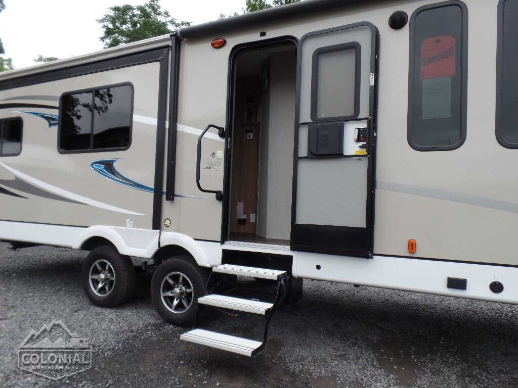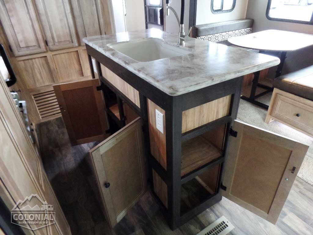 ¾ Gel Coated Fiberglass Front Cap with LED Lights • Aluminum Wheels • Spare Tire Kit • Detachable Power Cord • Electric Power Awning w/ LED Light Strip • Magnetic Catches Compartment Doors • Tinted Safety Glass Windows • Front Diamond Plate • TV & Radio Antenna with Booster • E-Z Lube Axles • Spread Axle Design* • 13,500 BTU Roof Air Conditioner • Heated Enclosed Underbelly* • Solar Port • XL Folding Entry Assist Handle • Exterior Shower Station • Winterize Ready Kit • Black Tank Flush • 2 Exterior Speakers, 4 Interior Speakers • Ducted Furnace* • Ducted Ceiling Air Conditioning* • AM/FM/CD/DVD/Bluetooth Receiver • LED TV • Satellite Ready • LED Interior Lighting • Night Shades • Congoleum Designer Carefree Flooring • Mortise and Tenon Cabinet Doors • Stonecast Sink • Sink Covers • Microwave • Oven with Glass Top 3 Burner Cooktop • 6 Cu. Ft. Two Door Refrigerator • Silverware Drawer** • 60” x 80” Queen Bed • Skylight in Bath • 12” LED Step Light • LED Light Strip in Pass-through Storage • 24” x 48” Resin Outdoor Table • USB Ports in Master & Bunk Rooms • Porcelain Foot Flush Toilet • Backup Camera Prep • Battery Quick Disconnect •RVIA Seal