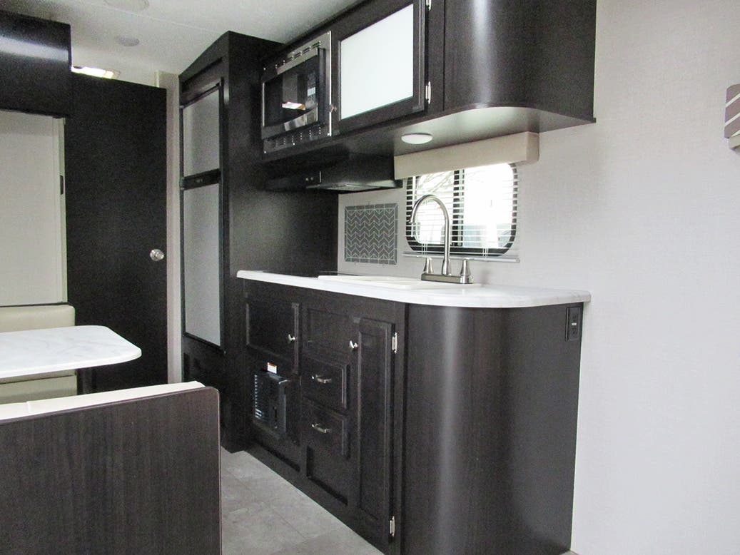 Living Room/Kitchen Seamless Countertop w/Sink Cover • Roller Ball Bearing Drawer Guides • Large Undermount Stainless Steel Single Bowl Sink • High Efficiency LED Lights • Mountain Walnut Cabinets • (2) Interior Speakers • Linoleum w/3-Year Warranty Bath Residential Radius Shower w/Glass Doors (most models) • High Efficiency LED Lights • Medicine Cabinet Bedroom Foam Mattress • Designer Valances • Pleated Nightshades • Overhead Storage • Under-Bed Storage • High Efficiency LED Lights • USB Charging Port • Two Shirt Closets Exterior/Construction Features EZ Exchange® (2) 20 LB LP Gas Tanks w/Auto Changeover • Large Pass-Thru Storage • Two-Tone White & Grey Fiberglass Walls • Exterior Shower w/Hot & Cold Water • Tinted Safety Glass Windows • High Efficiency Exterior LED Lighting • Laminated Sidewalls w/Aluminum Framing • (2) Marine Grade Exterior Speakers • Porch Light • Water Heater Bypass Valve • Power Cord w/Light • Tank Monitor System Weather-Shield Package (Mandatory) Forced Heat, Enclosed Underbelly & Radiant Foil Barrier Exterior Package (Mandatory) Friction Hinge Entry Door • Battery Disconnect Switch • Fender Guards • Seamless, One Piece Fiberglass Roof • 5/8″ Tongue & Groove Plywood Floor Decking • Spread Axles w/Auto Adjust Brakes and EZ Lube Hubs • NXG Huck-Bolt Frame • Norco BAL® E-Coated & EpoxyPainted Huck Bolted Frame • (4) Angled Scissor Jacks w/Foot Pads • 4″ Tube Bumper Sewer Hose Storage • Prewired for Furrion Solar Panel System • Prewired for Furrion Backup Camera • Dedicated Cable and Satellite hookups • Furrion Marine Grade Detachable Power Cord w/Light • Slam-Latch Baggage Doors w/ Magnetic Catches • Motion Lighted Pass-thru Storage • Hot & Cold Outside Shower • Keyed-Alike Key System • Venture Bottle Opener/Doggie Tie Down Interior Package (Mandatory) StorMore Bedside Nightstands • Tufted Dinette Cushions • Stainless Steel Accented Appliances • Designer Backsplash • Furrion Bluetooth Stereo AM/FM/ DVD/CD/MP3 • 7 CU FT Double Door Refrigerator • 2-Burner Cooktop w/Flush Glass Cover • 6-Gal Gas/Electric DSI Water Heater • Vented Range Hood w/Light • SafeTek® Box w/110v and USB Charging • Quilted Comforter • Designer Padded Headboard w/ Storage • Linoleum w/3-yr Warranty • Sky Light in Living Area • LED Lighting • 82″ Ceiling Height • Power Exhaust Fan in Bathroom • Shoe Cubby (F/P specific) • Surf(x) Seamless Countertops w/ Sink Cover and Tabletops • Porcelain Foot Flush Toilet Prices and Specs Subject to Change Canadian Specs May Differ From U.S. THE ABOVE ITEMS ARE STANDARD ON THIS MODEL AT NO EXTRA CHARGE UNLESS REPLACED BY OPTIONAL EQUIPMENT. All Above Specs Taken from 2019 KZ RV literature, some items may have been removed, changed or upgraded or not completely accurate. |