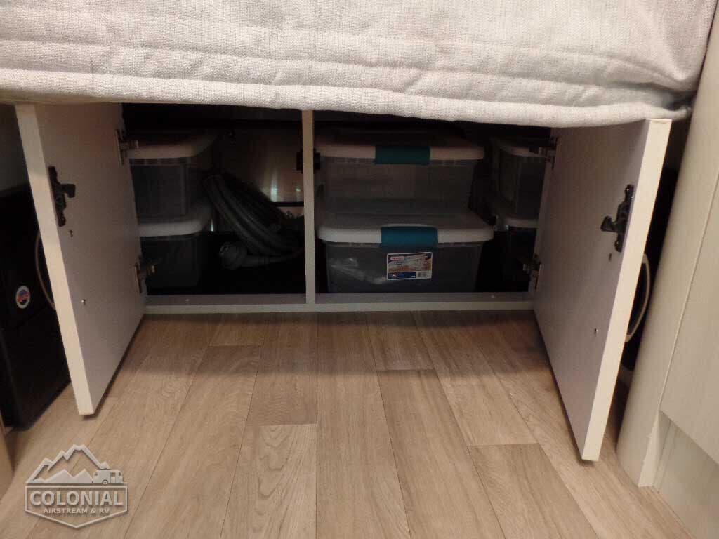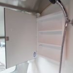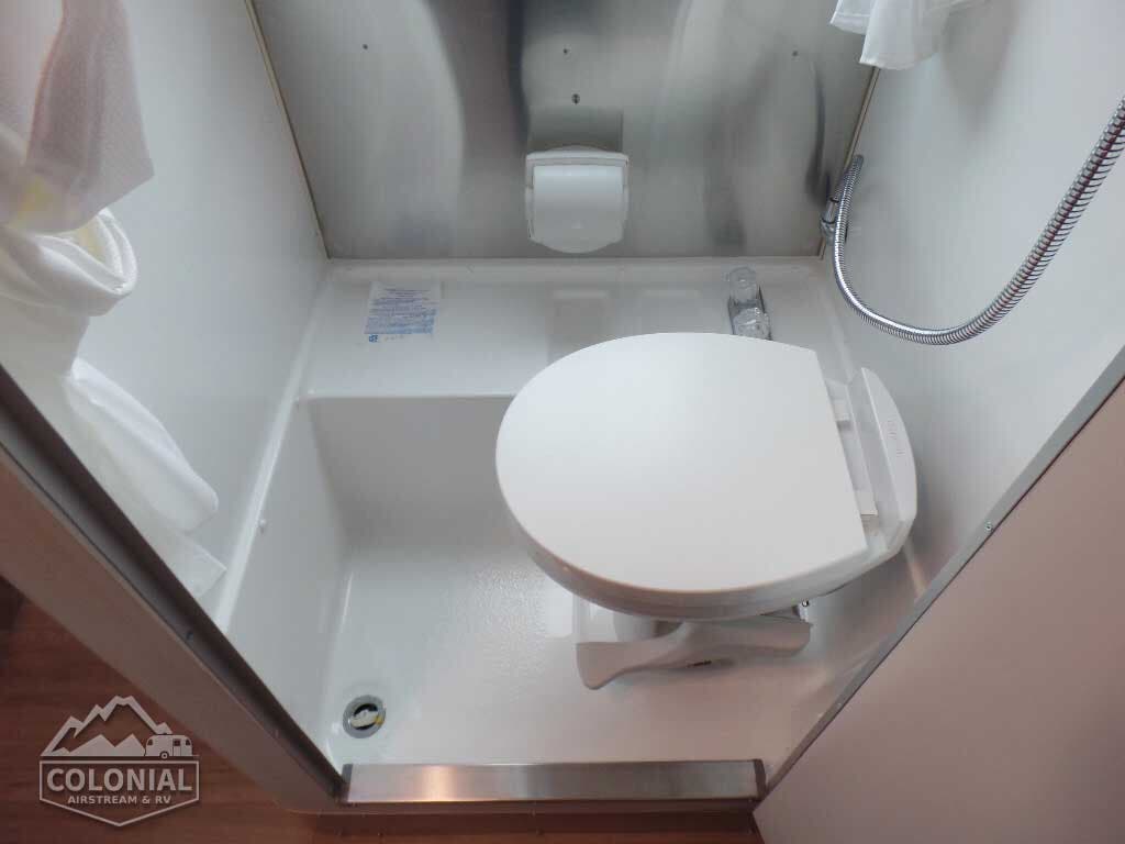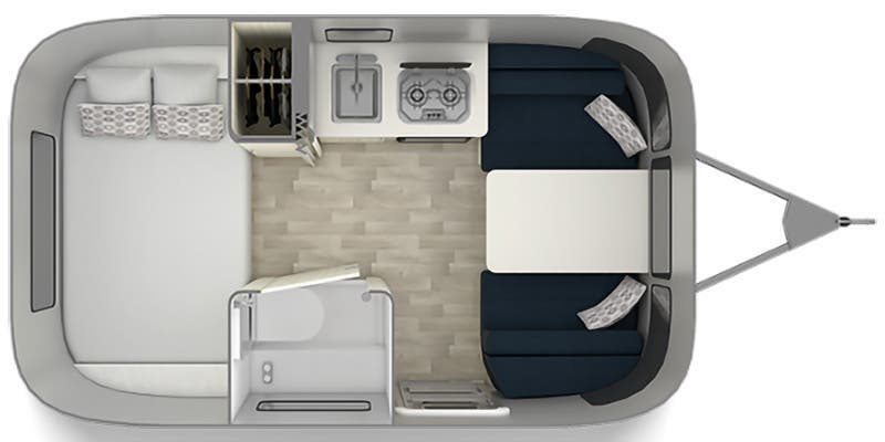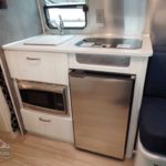 Complete Aluminum Interior Walls and Ceiling • AC with Heat Strip • Fan with Multiple Speeds • Probeless Tank Monitoring System • EcoBatt™ Insulation • Handcrafted Aluminum Screen Door • Panoramic Front Windows with Blackout Shades • Handcrafted Italian Lite-Ply Laminated Interior Cabinetry • Seamless Vinyl Flooring • LED Interior Lighting • Overhead Storage with Tambour Doors • Direct Spark Ignition LP Water Heater (6 gal.) • Coat & Key Hooks.