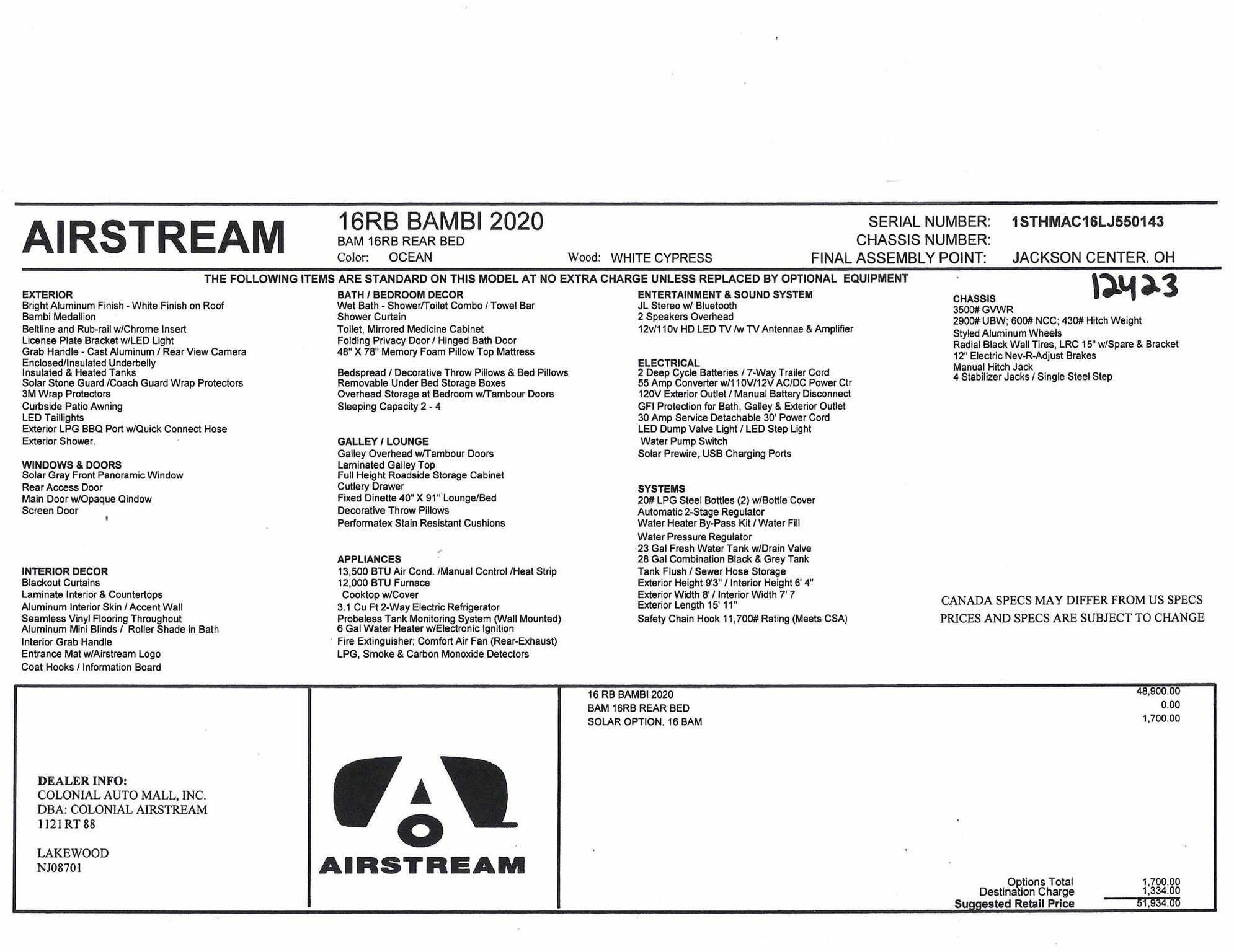 Model: 2020 – BAMBI STANDARD FEATURES