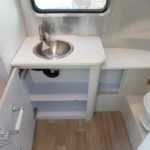2 Burner Cooktop (LP Gas) • Laminate Galley Top • Stainless Steel Sink • Laminate Dinette Top • Performatex Stain Resistant Dinette Cushions • Dinette Converts to a Lounge and Sleeping Accommodations • Flatware Organizer • JVC Stereo with Bluetooth Connectivity • 12v/110v LED HD TV with DVD and Omni Directional Antenna • Aluminum Blinds • Moen Faucet.