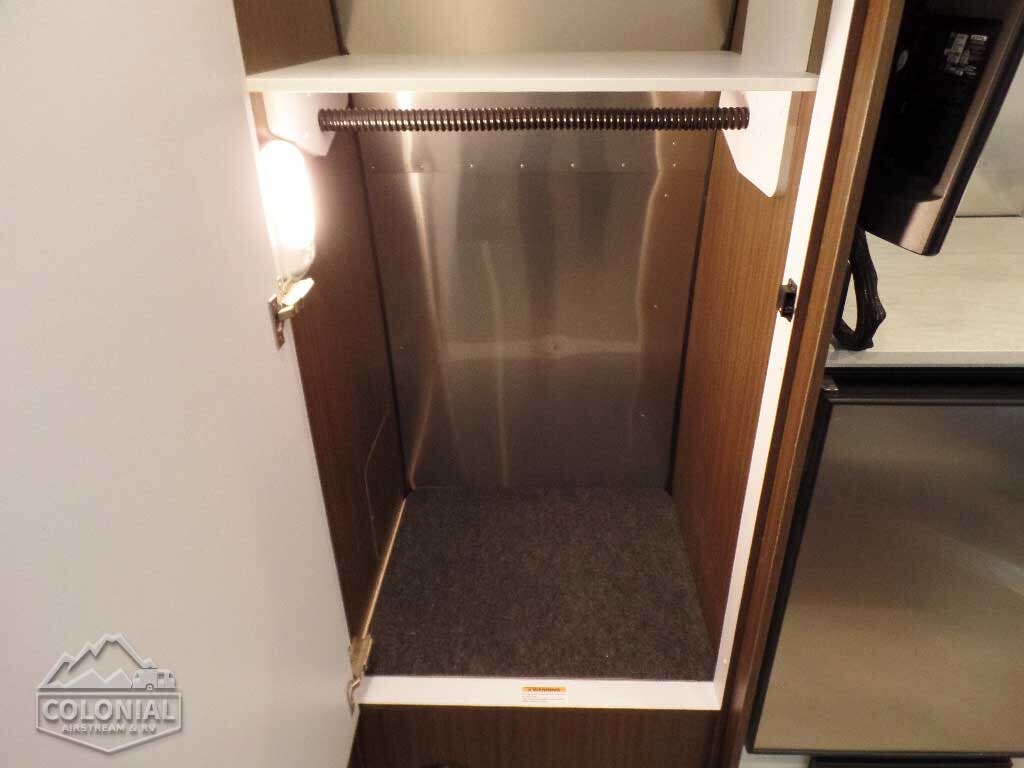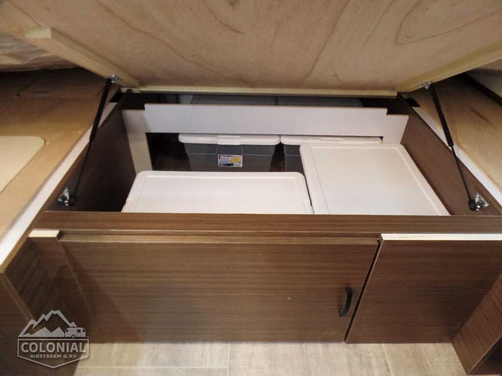 Complete Aluminum Interior Walls and Ceiling • Quietstream™ AC with Heat Pump & Electronic Thermostat • Fantastic© Fan with Thermostat & Automatic Rain Sensor • Probeless Tank Monitoring System • EcoBatt™ Insulation • Handcrafted Aluminum Screen Door with Guards • Panoramic Front Windows with Blackout Shades • Handcrafted Italian Lite-Ply Laminated Interior Cabinetry • Seamless Vinyl Flooring, LED Interior Lighting with dimmer • Overhead Storage with Sliding Doors • Electric/LP Water Heater (6 gal.; 9 gal. production) • 1000W Pure Sine Inverter • Coat & Key Hooks.