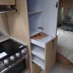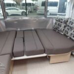 Complete Aluminum Interior Walls and Ceiling • Quietstream™ AC with Heat Pump & Electronic Thermostat • Fantastic© Fan with Thermostat & Automatic Rain Sensor • Probeless Tank Monitoring System • EcoBatt™ Insulation • Handcrafted Aluminum Screen Door with Guards • Panoramic Front Windows with Blackout Shades • Handcrafted Italian Lite-Ply Laminated Interior Cabinetry • Seamless Vinyl Flooring • LED Interior Lighting with dimmer • Overhead Storage with Heavy Duty Hinges • Electric/LP Water Heater (6 gal.; 9 gal. production) • 1000W Pure Sine Inverter • Coat & Key Hooks.
