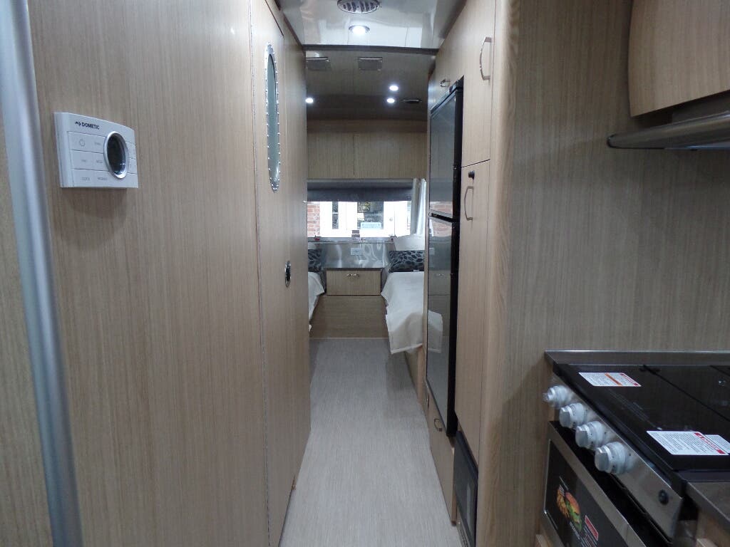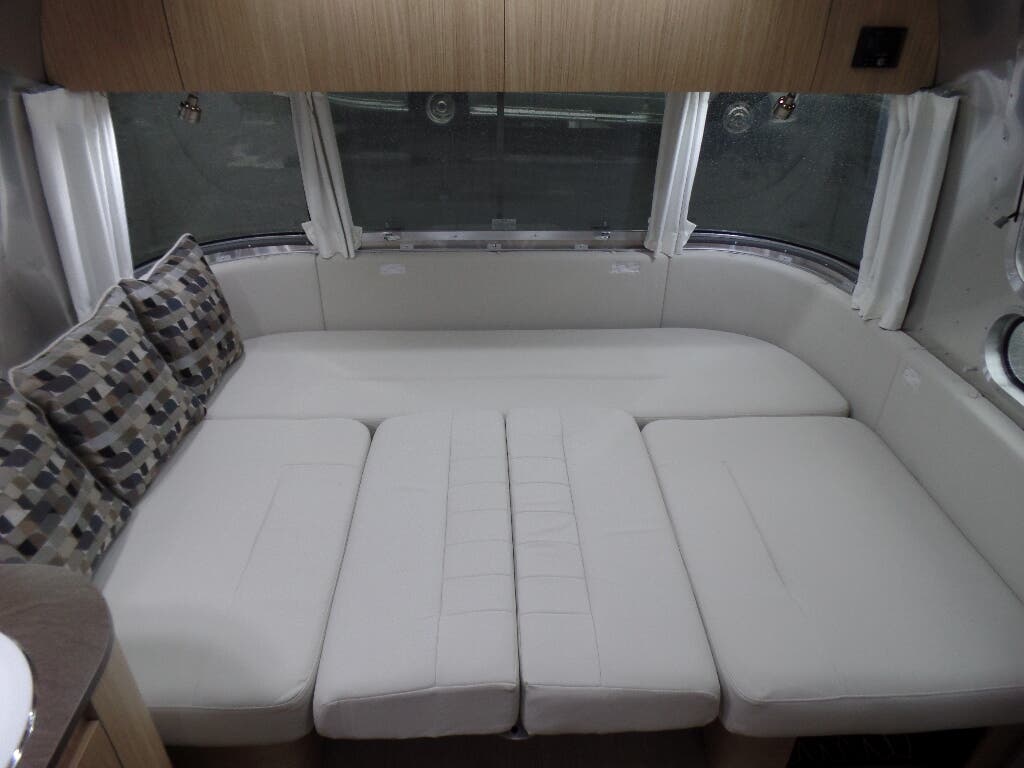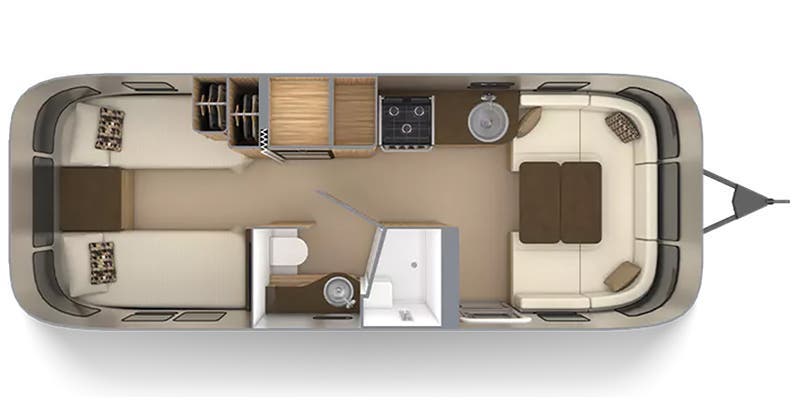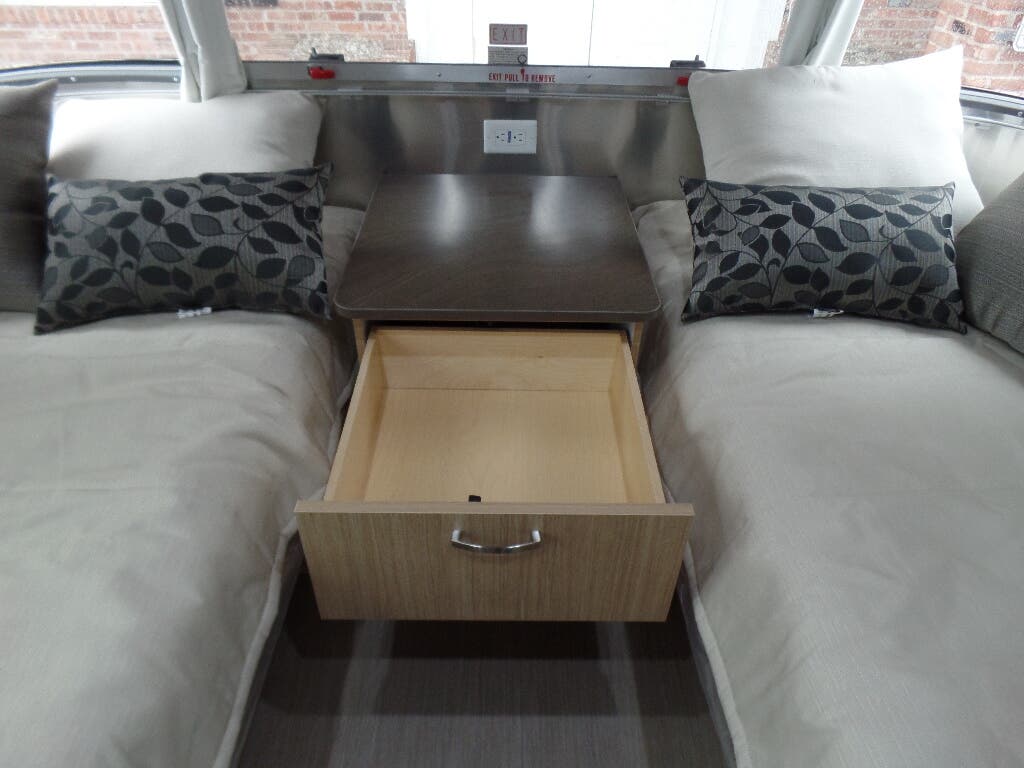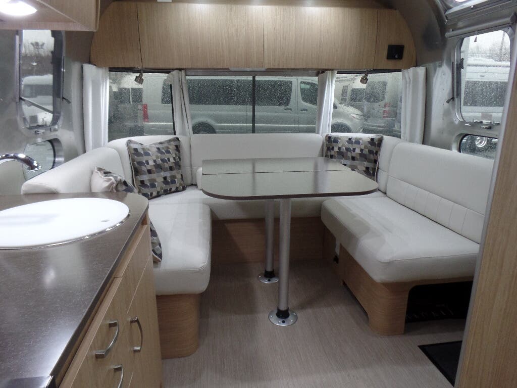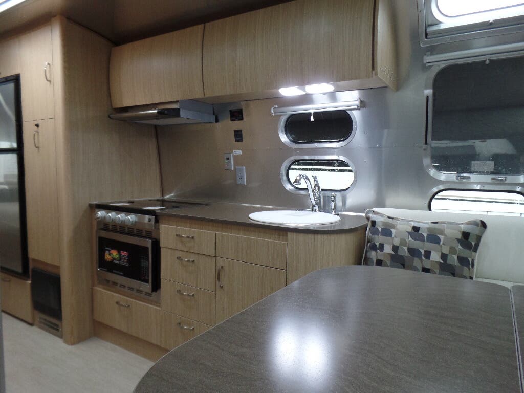 Semi-Monocoque Aluminum Superstructure • Fluorocarbon Treated UV Protected Aluminum Exterior • Temperature Reducing One Piece White Aluminum Roof • Thermal Barrier Protection Between Interior and Exterior • Hand Crafted Welded Extruded Aluminum Window Frames • Tempered Tinted Windows with Double Cam Latching System • Manual ZipDee® Patio Awning with Sunbrella Fabric • ZipDee® Rear & Roadside Window Awning with Sunbrella Fabric • LED Dimmable Patio Awning Light • Polished Bumper with Storage • LP (2 – 30 lb. Steel Tanks) with auto 2-stage regulator • Aluminum Removable LP Cover • 2 Deep Cycle Batteries Group 24 Series with Multi-Stage Converter • Exterior LP Gas Low Pressure Grill Connection • Solar Front Window Protection • Stainless Steel Front Stone Guard Protection • Exterior Shower with Hot & Cold Water • Lockable Fresh Water Tank Inlet • City Water Inlet with Water Pressure Regulator • Black Tank Flush System • Hand Painted Chassis • Torsion Axle Suspension • Shock Absorber • Powered Hitch Jack with Light • 4 Manual Heavy Duty Stabilizer Jacks • Goodyear Endurance ST225/75R15 Tires • Stylized Aluminum Wheels • Nev-R-Lube Sealed Bearings • Nev-R-Adjust Brakes • Spare Tire – Full Size • Solar Pre-wire (Rooftop & Front Access Points) • Rear View Monitoring System • Cable TV Hookup • Satellite TV Hookup • Dedicated Waste Hose Storage • Custom Aluminum Handcrafted 26 in. Wide Entry Door with Window • Aluminum Entry Door Handle • Unique Front Door Key with Heavy Duty Deadbolt • Cast Aluminum Door Hinges • Airstream Custom Aluminum Entry Step • LED Entrance Light • LED Tank Service Light • LED Storage Compartment Light • Cast Aluminum LED Tail Lights • Licence Plate Bracket with LED Light • Enclosed Aluminum Insulated Heated Underbelly.