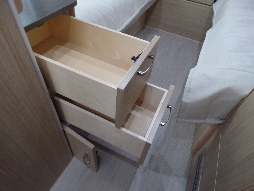 Pillow Top Memory Foam Mattress • Quilted Bedspread • Decorative Throw Pillows • Sleeping Pillows • Reading LED Lights • Under Bed Storage • Overhead Storage with Heavy Duty Hinges • Wardrobe with Hanging Bar • LG LED HD TV (single shareable TV in 23 models) • Blackout Curtains.