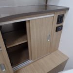 3 Burner Cooktop (LP Gas) • Baraldi Cooking Vent with Light • Laminate Galley Top • Stainless Steel Sink with Cutting Board Sink Cover • Laminate Dinette Top • Ultraleather Dwell Lounge and Dinette Seating • Dinette Converts to a Lounge and Sleeping Accommodations • Pull out Lounge for Sleeping Accommodations (models w/lounge), Flatware Organizer • JL Stereo with Bluetooth • Surround Sound and Subwoofer • LG LED HD TV with Omni Directional Antenna • Blu-Ray™ DVD Player • Aluminum Roller Blinds • Moen Faucet.