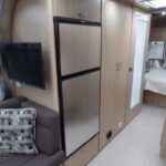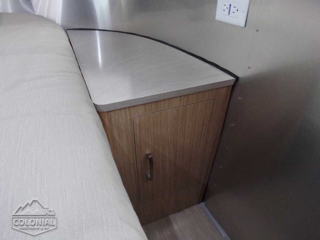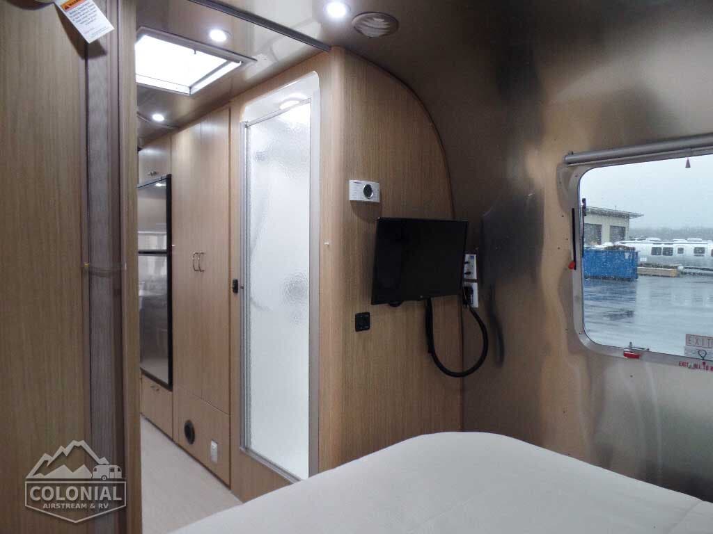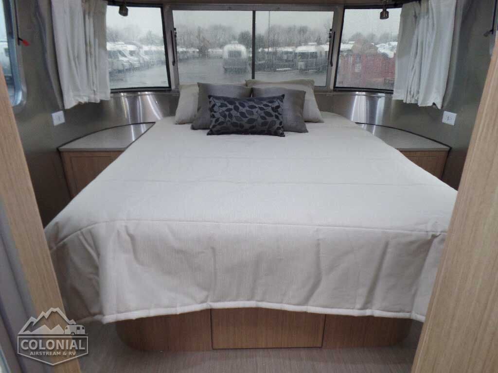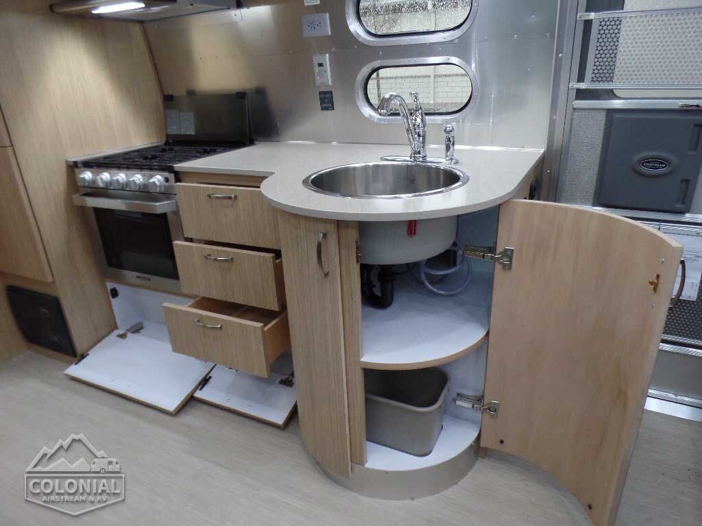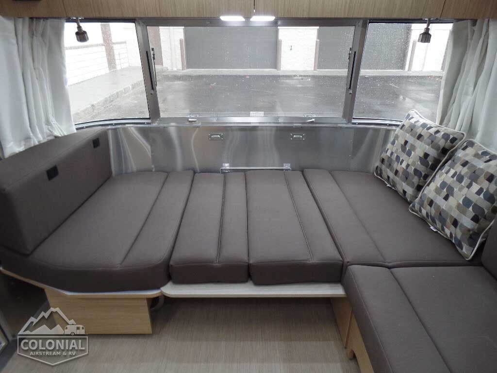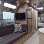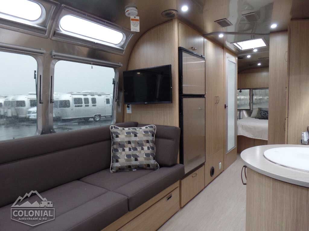 Semi-Monocoque Aluminum Superstructure • Fluorocarbon Treated UV Protected Aluminum Exterior • Temperature Reducing One Piece White Aluminum Roof • Thermal Barrier Protection Between Interior and Exterior • Hand Crafted Welded Extruded Aluminum Window Frames • Tempered Tinted Windows with Double Cam Latching System • Manual ZipDee® Patio Awning with Sunbrella Fabric • ZipDee® Rear & Roadside Window Awning with Sunbrella Fabric • LED Dimmable Patio Awning Light • Polished Bumper with Storage • LP (2 – 30 lb. Steel Tanks) with auto 2-stage regulator • Aluminum Removable LP Cover • 2 Deep Cycle Batteries Group 24 Series with Multi-Stage Converter • Exterior LP Gas Low Pressure Grill Connection • Solar Front Window Protection • Stainless Steel Front Stone Guard Protection • Exterior Shower with Hot & Cold Water • Lockable Fresh Water Tank Inlet • City Water Inlet with Water Pressure Regulator • Black Tank Flush System • Hand Painted Chassis • Torsion Axle Suspension • Shock Absorber • Powered Hitch Jack with Light • 4 Manual Heavy Duty Stabilizer Jacks • Goodyear Endurance ST225/75R15 Tires • Stylized Aluminum Wheels • Nev-R-Lube Sealed Bearings • Nev-R-Adjust Brakes • Spare Tire – Full Size • Solar Pre-wire (Rooftop & Front Access Points) • Rear View Monitoring System • Cable TV Hookup • Satellite TV Hookup • Dedicated Waste Hose Storage • Custom Aluminum Handcrafted 26 in. Wide Entry Door with Window • Aluminum Entry Door Handle • Unique Front Door Key with Heavy Duty Deadbolt • Cast Aluminum Door Hinges • Airstream Custom Aluminum Entry Step • LED Entrance Light • LED Tank Service Light • LED Storage Compartment Light • Cast Aluminum LED Tail Lights • Licence Plate Bracket with LED Light • Enclosed Aluminum Insulated Heated Underbelly.