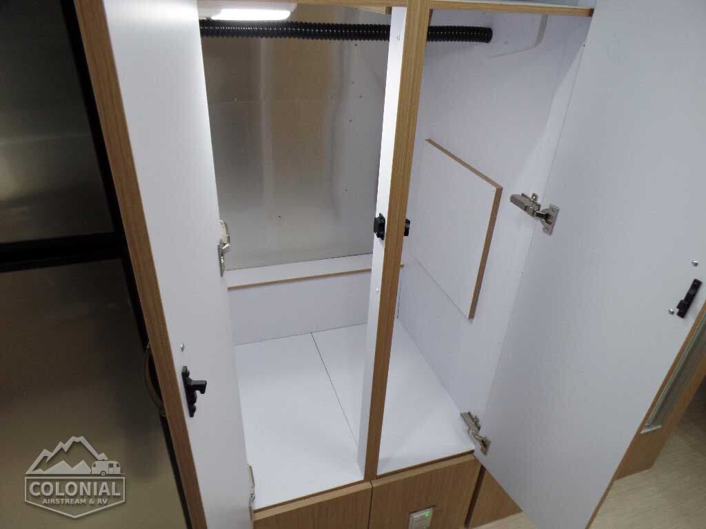 Complete Aluminum Interior Walls and Ceiling • Quietstream™ AC with Heat Pump & Electronic Thermostat • Fantastic© Fan with Thermostat & Automatic Rain Sensor • Probeless Tank Monitoring System • EcoBatt™ Insulation • Handcrafted Aluminum Screen Door with Guards • Panoramic Front Windows with Blackout Shades • Handcrafted Italian Lite-Ply Laminated Interior Cabinetry • Seamless Vinyl Flooring • LED Interior Lighting with dimmer • Overhead Storage with Heavy Duty Hinges • Electric/LP Water Heater (6 gal.; 9 gal. production) • 1000W Pure Sine Inverter • Coat & Key Hooks.