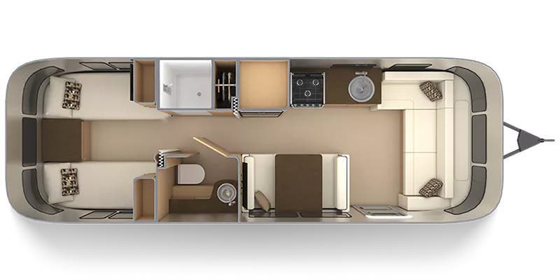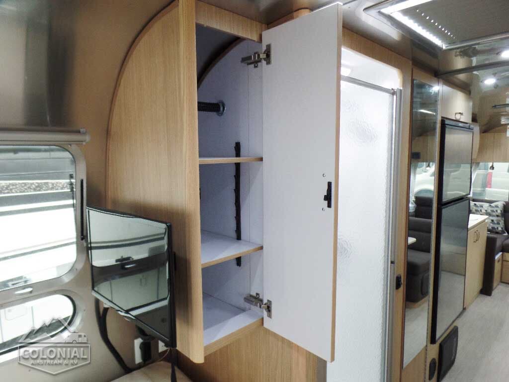 Semi-Monocoque Aluminum Superstructure • Fluorocarbon Treated UV Protected Aluminum Exterior • Temperature Reducing One Piece White Aluminum Roof • Thermal Barrier Protection Between Interior and Exterior • Hand Crafted Welded Extruded Aluminum Window Frames • Tempered Tinted Windows with Double Cam Latching System • Manual ZipDee® Patio Awning with Sunbrella Fabric • ZipDee® Rear & Roadside Window Awning with Sunbrella Fabric • LED Dimmable Patio Awning Light • Polished Bumper with Storage • LP (2 – 30 lb. Steel Tanks) with auto 2-stage regulator • Aluminum Removable LP Cover • 2 Deep Cycle Batteries Group 24 Series with Multi-Stage Converter • Exterior LP Gas Low Pressure Grill Connection • Solar Front Window Protection • Stainless Steel Front Stone Guard Protection • Exterior Shower with Hot & Cold Water • Lockable Fresh Water Tank Inlet • City Water Inlet with Water Pressure Regulator • Black Tank Flush System • Hand Painted Chassis • Torsion Axle Suspension • Shock Absorber • Powered Hitch Jack with Light • 4 Manual Heavy Duty Stabilizer Jacks • Goodyear Endurance ST225/75R15 Tires • Stylized Aluminum Wheels • Nev-R-Lube Sealed Bearings • Nev-R-Adjust Brakes • Spare Tire – Full Size • Solar Pre-wire (Rooftop & Front Access Points) • Rear View Monitoring System • Cable TV Hookup • Satellite TV Hookup • Dedicated Waste Hose Storage • Custom Aluminum Handcrafted 26 in. Wide Entry Door with Window • Aluminum Entry Door Handle • Unique Front Door Key with Heavy Duty Deadbolt • Cast Aluminum Door Hinges • Airstream Custom Aluminum Entry Step • LED Entrance Light • LED Tank Service Light • LED Storage Compartment Light • Cast Aluminum LED Tail Lights • Licence Plate Bracket with LED Light • Enclosed Aluminum Insulated Heated Underbelly.