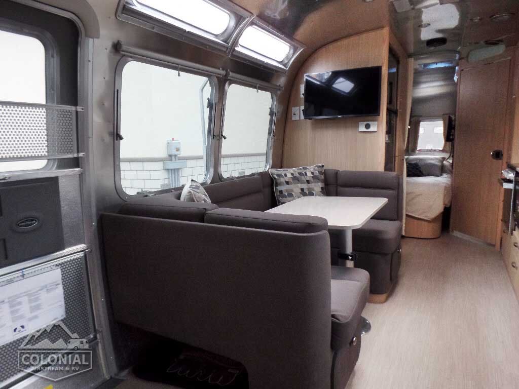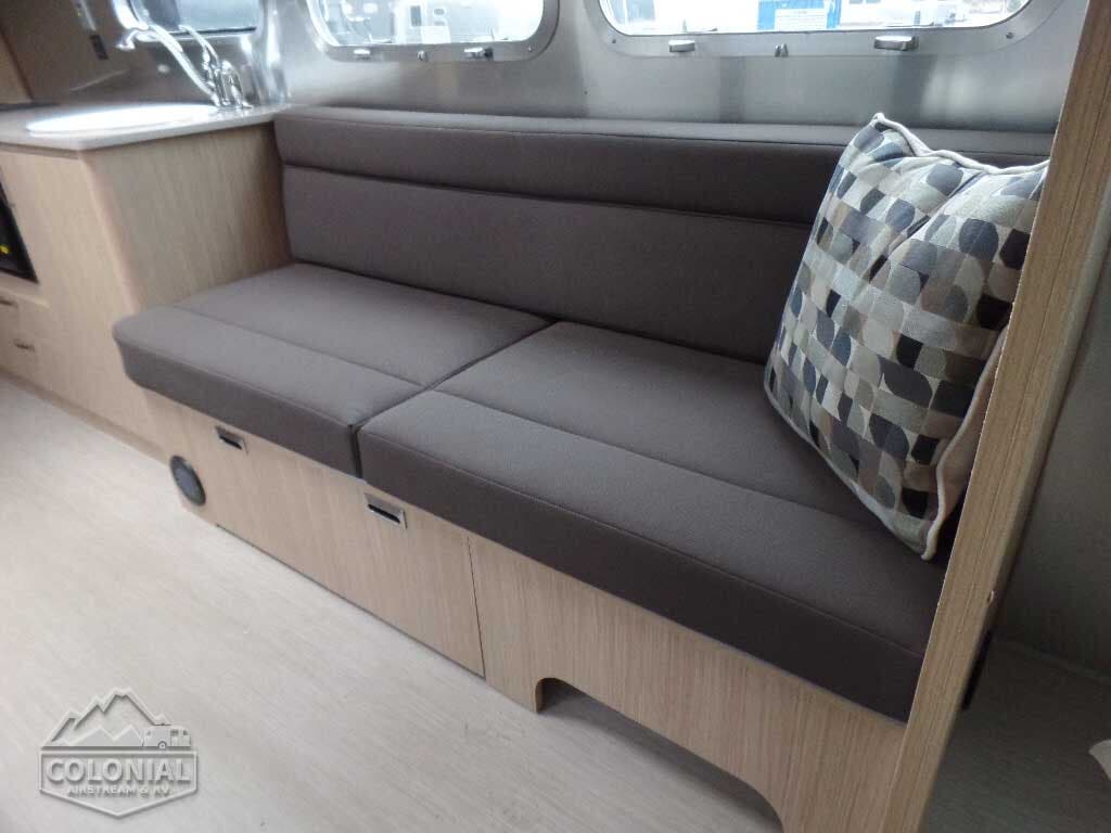 Semi-Monocoque Aluminum Superstructure • Fluorocarbon Treated UV Protected Aluminum Exterior • Temperature Reducing One Piece White Aluminum Roof • Thermal Barrier Protection Between Interior and Exterior • Hand Crafted Welded Extruded Aluminum Window Frames • Tempered Tinted Windows with Double Cam Latching System • Manual ZipDee® Patio Awning with Sunbrella Fabric • ZipDee® Rear & Roadside Window Awning with Sunbrella Fabric • LED Dimmable Patio Awning Light • Polished Bumper with Storage • LP (2 – 30 lb. Steel Tanks) with auto 2-stage regulator • Aluminum Removable LP Cover • 2 Deep Cycle Batteries Group 24 Series with Multi-Stage Converter • Exterior LP Gas Low Pressure Grill Connection • Solar Front Window Protection • Stainless Steel Front Stone Guard Protection • Exterior Shower with Hot & Cold Water • Lockable Fresh Water Tank Inlet • City Water Inlet with Water Pressure Regulator • Black Tank Flush System • Hand Painted Chassis • Torsion Axle Suspension • Shock Absorber • Powered Hitch Jack with Light • 4 Manual Heavy Duty Stabilizer Jacks • Goodyear Endurance ST225/75R15 Tires • Stylized Aluminum Wheels • Nev-R-Lube Sealed Bearings • Nev-R-Adjust Brakes • Spare Tire – Full Size • Solar Pre-wire (Rooftop & Front Access Points) • Rear View Monitoring System • Cable TV Hookup • Satellite TV Hookup • Dedicated Waste Hose Storage • Custom Aluminum Handcrafted 26 in. Wide Entry Door with Window • Aluminum Entry Door Handle • Unique Front Door Key with Heavy Duty Deadbolt • Cast Aluminum Door Hinges • Airstream Custom Aluminum Entry Step • LED Entrance Light • LED Tank Service Light • LED Storage Compartment Light • Cast Aluminum LED Tail Lights • Licence Plate Bracket with LED Light • Enclosed Aluminum Insulated Heated Underbelly.