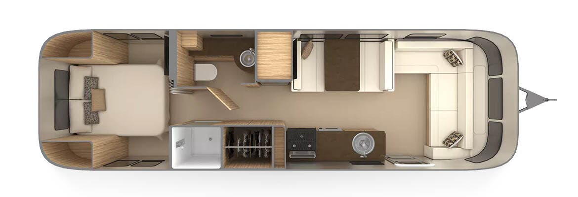 Semi-Monocoque Aluminum Superstructure, Fluorocarbon Treated UV Protected Aluminum Exterior, Temperature Reducing One Piece White Aluminum Roof, Thermal Barrier Protection Between Interior and Exterior, Hand Crafted Welded Extruded Aluminum Window Frames, Tempered Tinted Windows with Double Cam Latching System, Manual ZipDee® Patio Awning with Sunbrella Fabric, ZipDee® Rear & Roadside Window Awning with Sunbrella Fabric, LED Dimmable Patio Awning Light, Polished Bumper with Storage, LP (2 – 30 lb. Steel Tanks) with auto 2-stage regulator, Aluminum LP Cover, 2 Deep Cycle Batteries Group 24 Series with Multi-Stage Converter, Exterior LP Gas Low Pressure Camping Grill Connection, Solar Front Window Protection, Stainless Steel Front Stone Guard Protection, Exterior Shower with Hot & Cold Water, Lockable Fresh Water Tank Inlet, City Water Inlet with Water Pressure Regulator, Black Tank Flush System, Hand Painted Chassis, Torsion Axle Suspension, Shock Absorber, Powered Hitch Jack with Light, 4 Manual Heavy Duty Stabilizer Jacks, Goodyear Endurance ST225/75R15 Tires, Stylized Aluminum Wheels, Nev-R-Lube Sealed Bearings, Nev-R-Adjust Brakes, Spare Tire – Full Size, Solar Pre-wire (3 Rooftop & 1 Front Access Points), Rear View Monitoring System, Cable TV Hookup, Satellite TV Hookup, Dedicated Waste Hose Storage, Custom Aluminum Handcrafted 26 in. Wide Entry Door with Window, Aluminum Entry Door Handle, Unique Front Door Key with Heavy Duty Deadbolt, Cast Aluminum Door Hinges, Airstream Custom Aluminum Entry Step, LED Entrance Light, LED Tank Service Light, LED Storage Compartment Light, Cast Aluminum LED Tail Lights, Licence Plate Bracket with LED Light, Enclosed Aluminum Insulated Heated Underbelly.