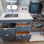 Stainless Steel 3 Burner Cooktop (LP Gas) with Glass Top • Baraldi Cooking Vent with Light • Dupont Corian® Solid Surface Galley Top • Multifunctional Storage Bins Behind Galley Sink with Dupont Corian® Covers • Moen® Stainless Steel Sink with Dupont Corian® Sink Cover • Custom Laminate Dinette Top • Award Winning Spradling HITCH® • Lounge and Dinette Seating (Stain Resistant) • Dinette Converts to a Lounge and Sleeping Accommodations • Flatware Organizer •Fusion Touchscreen Stereo with Wi-Fi • Apple AirPlay & Bluetooth Connectivity • Over-the-Air Software Updates • SiriusXM • Fusion App • LG LED HD TV (Single Shareable TV in 23 model) • Blu-Ray™ DVD Player • Aluminum Roller Blinds • Franke Faucet.