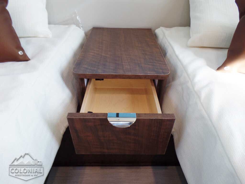 Semi-Monocoque Aluminum Superstructure • Fluorocarbon Treated UV Protected Aluminum Exterior • Temperature Reducing One Piece White Aluminum Roof • Thermal Barrier Protection Between Interior and Exterior • Hand Crafted Welded Extruded Aluminum Window Frames • Tempered Tinted Windows with Double Cam Latching System • Powered ZipDee® Patio Awning with Sunbrella Fabric • ZipDee® Rear & Roadside Window Awning with Sunbrella Fabric • LED Dimmable Patio Awning Light • Polished Bumper with Storage • LP (2 – 30 lb. Steel Tanks) with auto 2-stage regulator • Aluminum LP Cover • 2 Deep Cycle Batteries Group 24 Series 12V with Multi-Stage Converter • Exterior LP Quick Connect Service Port (For Low Pressure Camping Grill) • Solar Front Window Protection • Stainless Steel Front Stone Guard Protection • Exterior Shower with Hot & Cold Water • Lockable Fresh Water Tank Inlet • City Water Inlet with Water Pressure Regulator • Black Tank Flush System • Hand Painted Chassis • Torsion Axle Suspension • Shock Absorber • Powered Hitch Jack with Light.