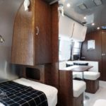 European inspired and American made, Globetrotter is a modern celebration of minimalist design. Its crisp, clean lines and delicate neutral colors make it a sophisticated beauty while softer curves, panoramic windows, wrap-around upholstery, recessed speakers, and backlighting throughout make it a modern traveler’s dream. From wine tastings to art festivals to cross country treks, the Globetrotter Travel Trailer will turn heads and hearts young and old.