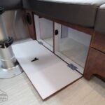 Stainless Steel 3 Burner Cooktop (LP Gas) with Glass Top • Baraldi Cooking Vent with Light • Dupont Corian® Solid Surface Galley Top • Multifunctional Storage Bins Behind Galley Sink with Dupont Corian® Covers • Moen® Stainless Steel Sink with Dupont Corian® Sink Cover • Custom Laminate Dinette Top • Award Winning Spradling HITCH® • Lounge and Dinette Seating (Stain Resistant) • Dinette Converts to a Lounge and Sleeping Accommodations • Flatware Organizer • Fusion Touchscreen Stereo with Wi-Fi • Apple AirPlay & Bluetooth Connectivity • Over-the-Air Software Updates • SiriusXM • Fusion App • LG LED HD TV (Single Shareable TV in 23 model) • Blu-Ray™ DVD Player • Aluminum Roller Blinds • Franke Faucet.