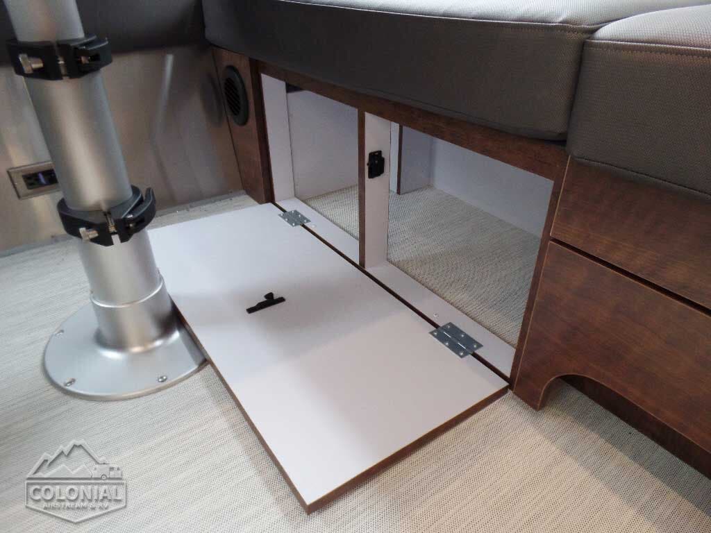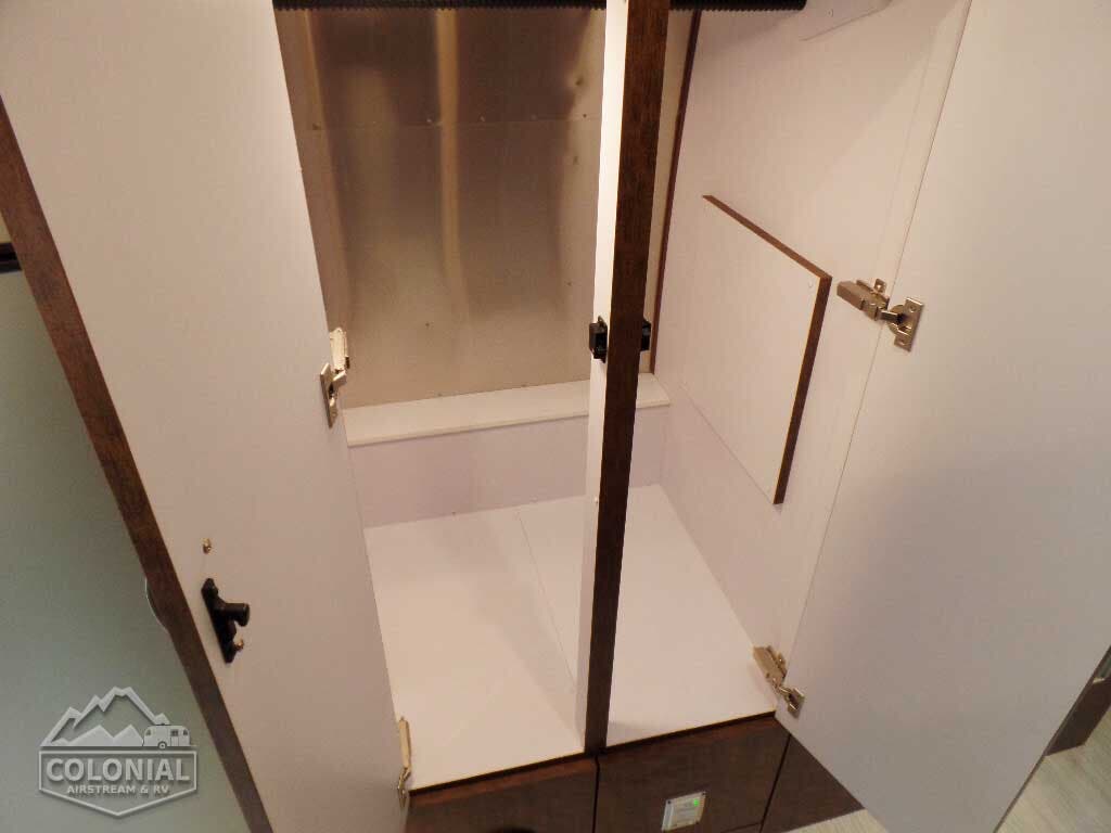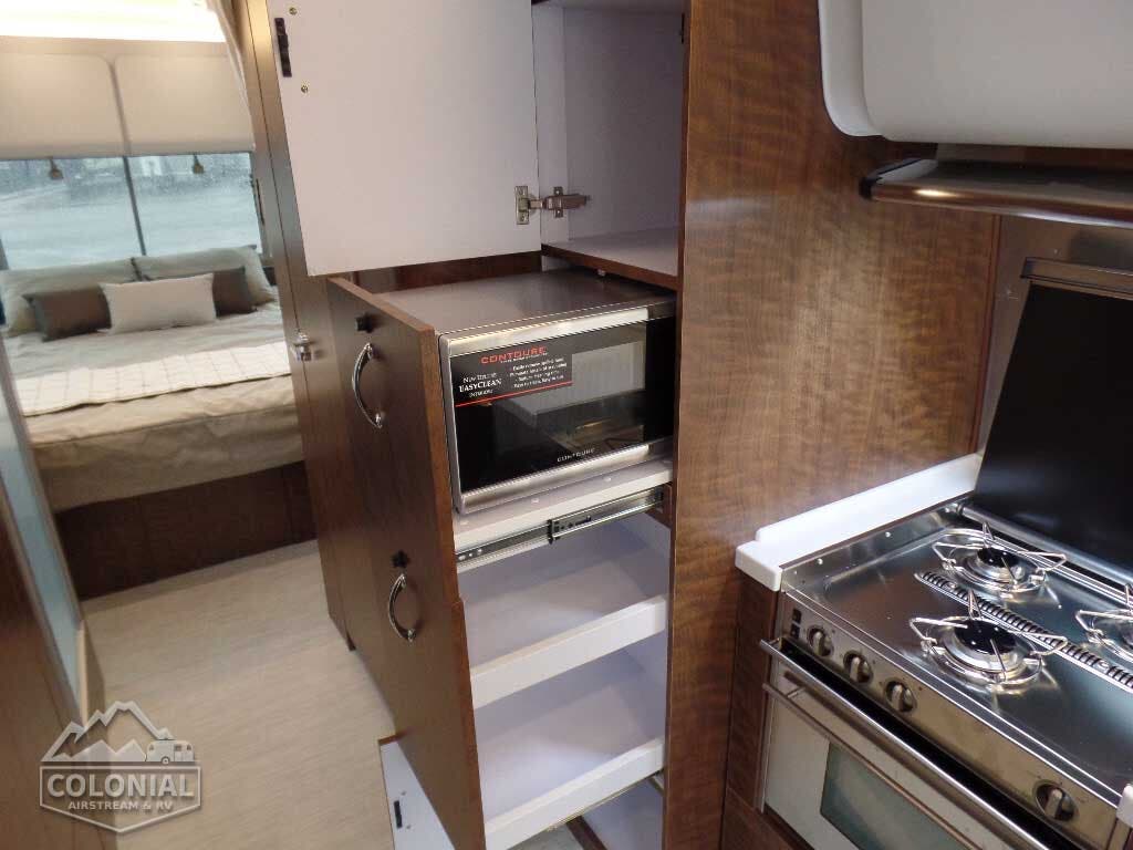 Complete Aluminum Interior Walls and Ceiling • Quietstream™ AC with Heat Pump & Electronic Thermostat • Fantastic© Fan with Thermostat & Automatic Rain Sensor • Probeless Tank Monitoring System • EcoBatt™ Insulation • Handcrafted Aluminum Screen Door with Guards • Panoramic Front Windows with Blackout Shades • Handcrafted Italian Lite-Ply Laminated Interior Cabinetry • Seamless Luxury Woven Vinyl Flooring • LED Interior Lighting with dimmer • Overhead Roof Cabinets with Auto LED Lighting • Electric/LP Water Heater (6 gal.; 9 gal. production) • 1000W Pure Sine Inverter • Coat & Key Hooks.