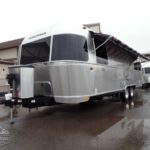 Semi-Monocoque Aluminum Superstructure • Fluorocarbon Treated UV Protected Aluminum Exterior • Temperature Reducing One Piece White Aluminum Roof • Thermal Barrier Protection Between Interior and Exterior • Hand Crafted Welded Extruded Aluminum Window Frames • Tempered Tinted Windows with Double Cam Latching System • Powered ZipDee® Patio Awning with Sunbrella Fabric • ZipDee® Rear & Roadside Window Awning with Sunbrella Fabric • LED Dimmable Patio Awning Light • Polished Bumper with Storage • LP (2 – 30 lb. Steel Tanks) with auto 2-stage regulator • Aluminum LP Cover • 2 Deep Cycle Batteries Group 24 Series 12V with Multi-Stage Converter • Exterior LP Quick Connect Service Port (For Low Pressure Camping Grill) • Solar Front Window Protection • Stainless Steel Front Stone Guard Protection • Exterior Shower with Hot & Cold Water • Lockable Fresh Water Tank Inlet • City Water Inlet with Water Pressure Regulator • Black Tank Flush System • Hand Painted Chassis • Torsion Axle Suspension • Shock Absorber • Powered Hitch Jack with Light.