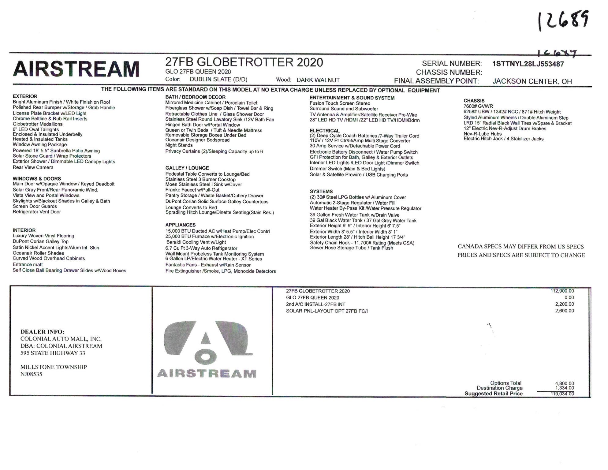Airstream Logo Entrance Mat • Fire Extinguisher • Emergency Manual Crank for Powered Hitch Jack • LP, Smoke & Carbon Monoxide Detectors • Built In Winterization Kit • TRA Certified Green: Emerald Status (Highest Rating) • 3 Year Airstream Limited Warranty (Transferable) • 3 Year 24/7 Coach-Net® Roadside Assistance • Internally Routed A/C Condensation Drain Line to Wheel Well.