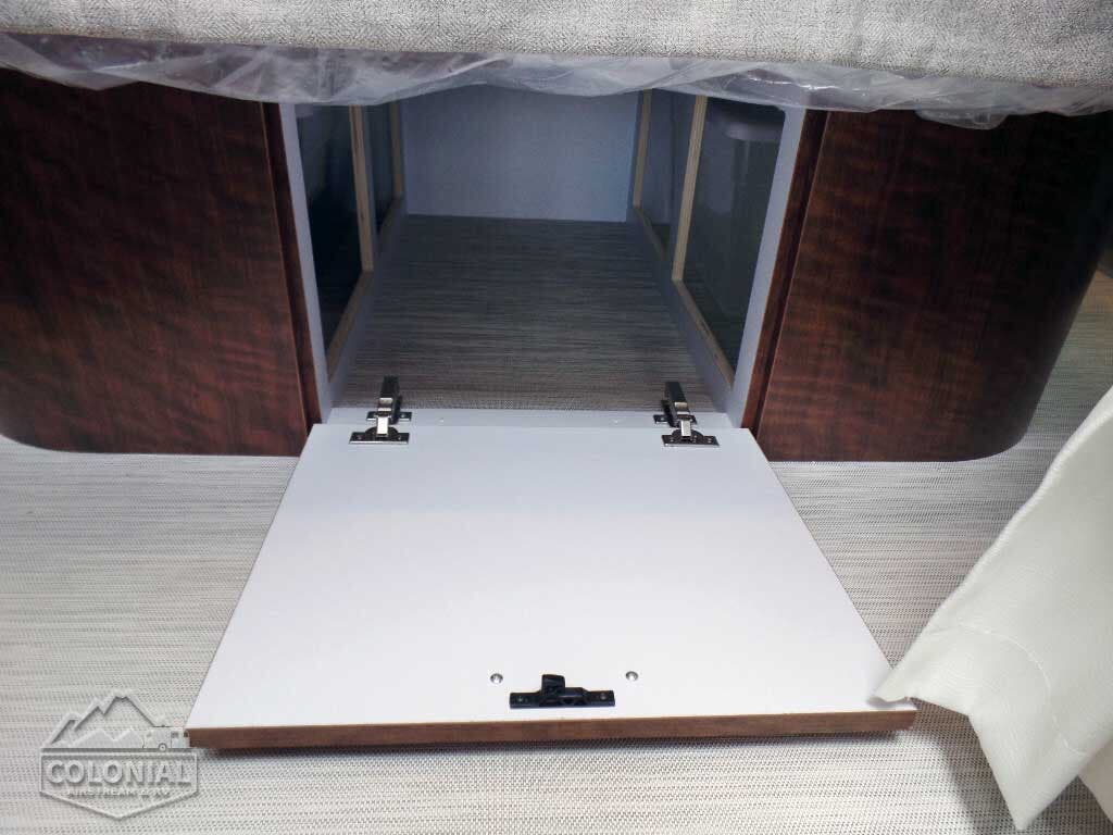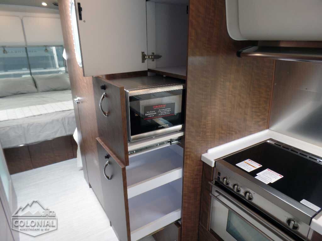 Complete Aluminum Interior Walls and Ceiling • Quietstream™ AC with Heat Pump & Electronic Thermostat • Fantastic© Fan with Thermostat & Automatic Rain Sensor • Probeless Tank Monitoring System • EcoBatt™ Insulation • Handcrafted Aluminum Screen Door with Guards • Panoramic Front Windows with Blackout Shades • Handcrafted Italian Lite-Ply Laminated Interior Cabinetry • Seamless Luxury Woven Vinyl Flooring • LED Interior Lighting with dimmer • Overhead Roof Cabinets with Auto LED Lighting • Electric/LP Water Heater (6 gal.; 9 gal. production) • 1000W Pure Sine Inverter • Coat & Key Hooks.