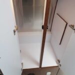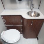 Removable Hand-Held Shower Head with Shut Off • Porcelain Toilet • Lavy Sink • Roof Vent/Fan • Towel Bar/Ring • Retractable Clothes Line in Shower • Grohe Faucet.