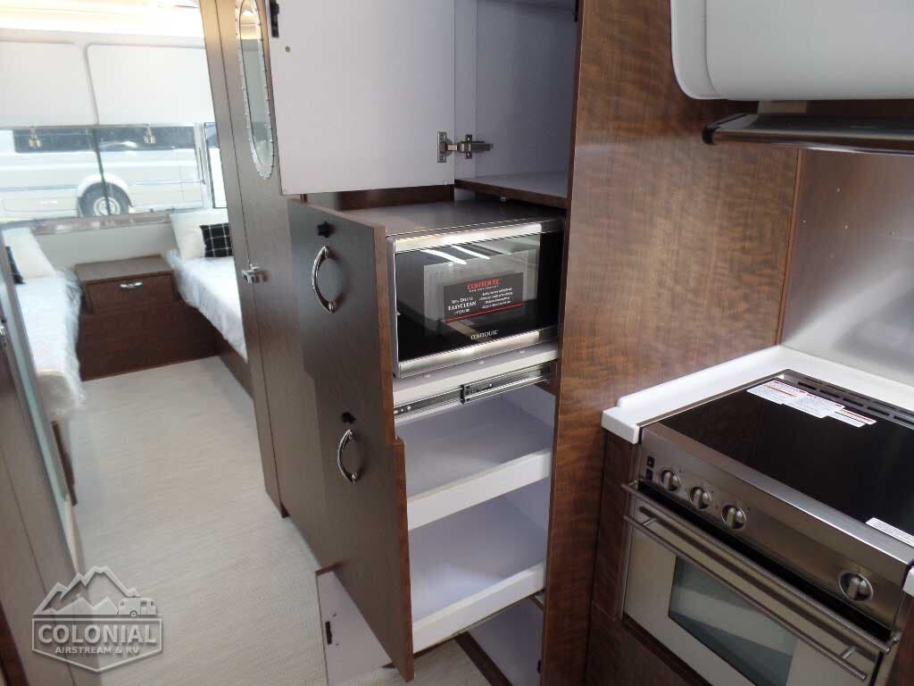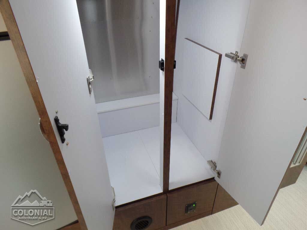 Complete Aluminum Interior Walls and Ceiling • Quietstream™ AC with Heat Pump & Electronic Thermostat • Fantastic© Fan with Thermostat & Automatic Rain Sensor • Probeless Tank Monitoring System • EcoBatt™ Insulation • Handcrafted Aluminum Screen Door with Guards • Panoramic Front Windows with Blackout Shades • Handcrafted Italian Lite-Ply Laminated Interior Cabinetry • Seamless Luxury Woven Vinyl Flooring • LED Interior Lighting with dimmer • Overhead Roof Cabinets with Auto LED Lighting • Electric/LP Water Heater (6 gal.; 9 gal. production) • 1000W Pure Sine Inverter • Coat & Key Hooks.