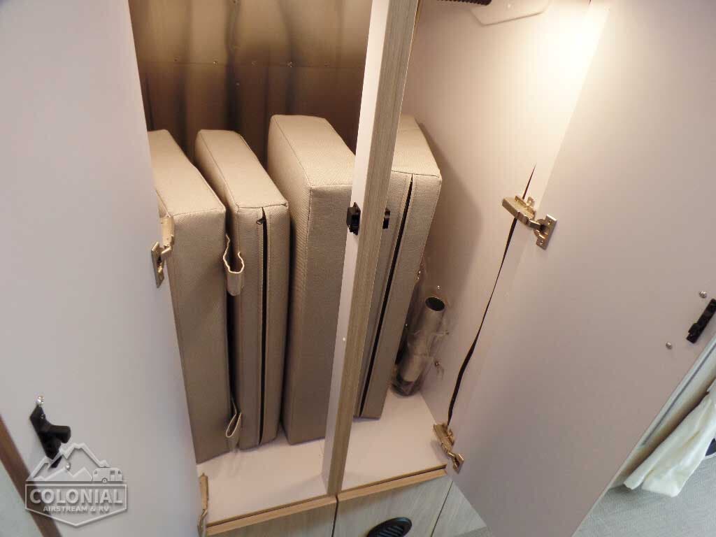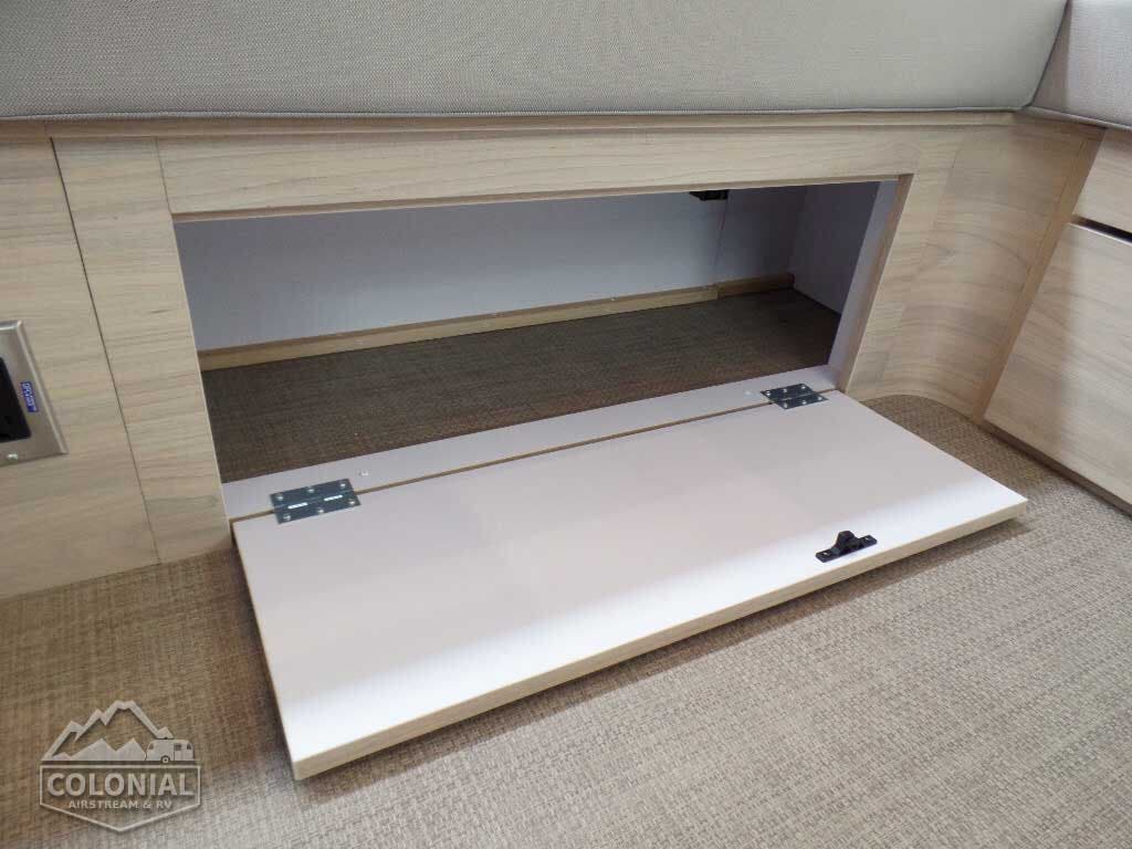 Complete Aluminum Interior Walls and Ceiling • Quietstream™ AC with Heat Pump & Electronic Thermostat • Fantastic© Fan with Thermostat & Automatic Rain Sensor • Probeless Tank Monitoring System • EcoBatt™ Insulation • Handcrafted Aluminum Screen Door with Guards • Panoramic Front Windows with Blackout Shades • Handcrafted Italian Lite-Ply Laminated Interior Cabinetry • Seamless Luxury Woven Vinyl Flooring • LED Interior Lighting with dimmer • Overhead Roof Cabinets with Auto LED Lighting • Electric/LP Water Heater (6 gal.; 9 gal. production) • 1000W Pure Sine Inverter • Coat & Key Hooks.