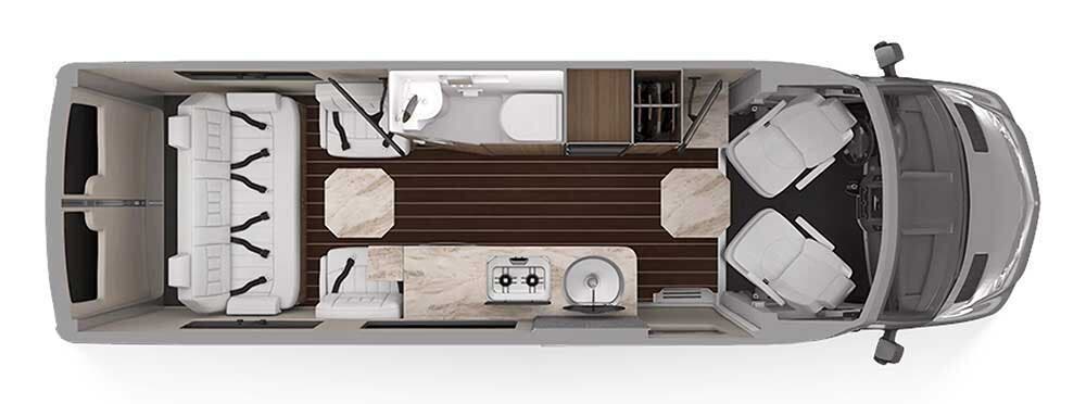 Mercedes-Benz® Sprinter 3500 • Mercedes-Benz® 3.0L V6 Turbo Diesel • BlueTEC SCR Technology, 50 State – EPA/CARB Standards • 188 HP / 325 lbs torque • 7 Speed Automatic • 170” Wheelbase • GVWR 11,030 lbs / NCC 1,195 lbs • UVW 9,225 lbs / NCC 1,195 lbs • 24′ 6″ Exterior length • 6’7” Exterior Width • 9’8” Exterior Height (9’ 11” 4X4) • Multiple Safety Air Bags • Active Brake Assist • Active Lane Keeping Assist • Active Blind Spot Assist • Active Cruise Control Assist • Active Driver Attention Assist • Active Rear Cross Traffic Assist • E-Call Assist • Traffic Sign Assist • Front & Rear Parktronic Parking Assist • High Beam Assist • Rain Sensing Windshield Wipers • Rear Camera Assist