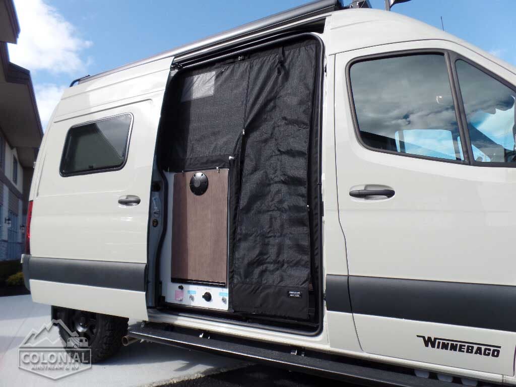 Side screen door w/magnetic closure system • Rear screen door w/blackout panel • Powered patio awning • Porch light w/interior switch • Running boards w/ground effect lighting and rubber trim • Rear mud guards • Movable ladder • Luggage Rack • Fold-down exterior table