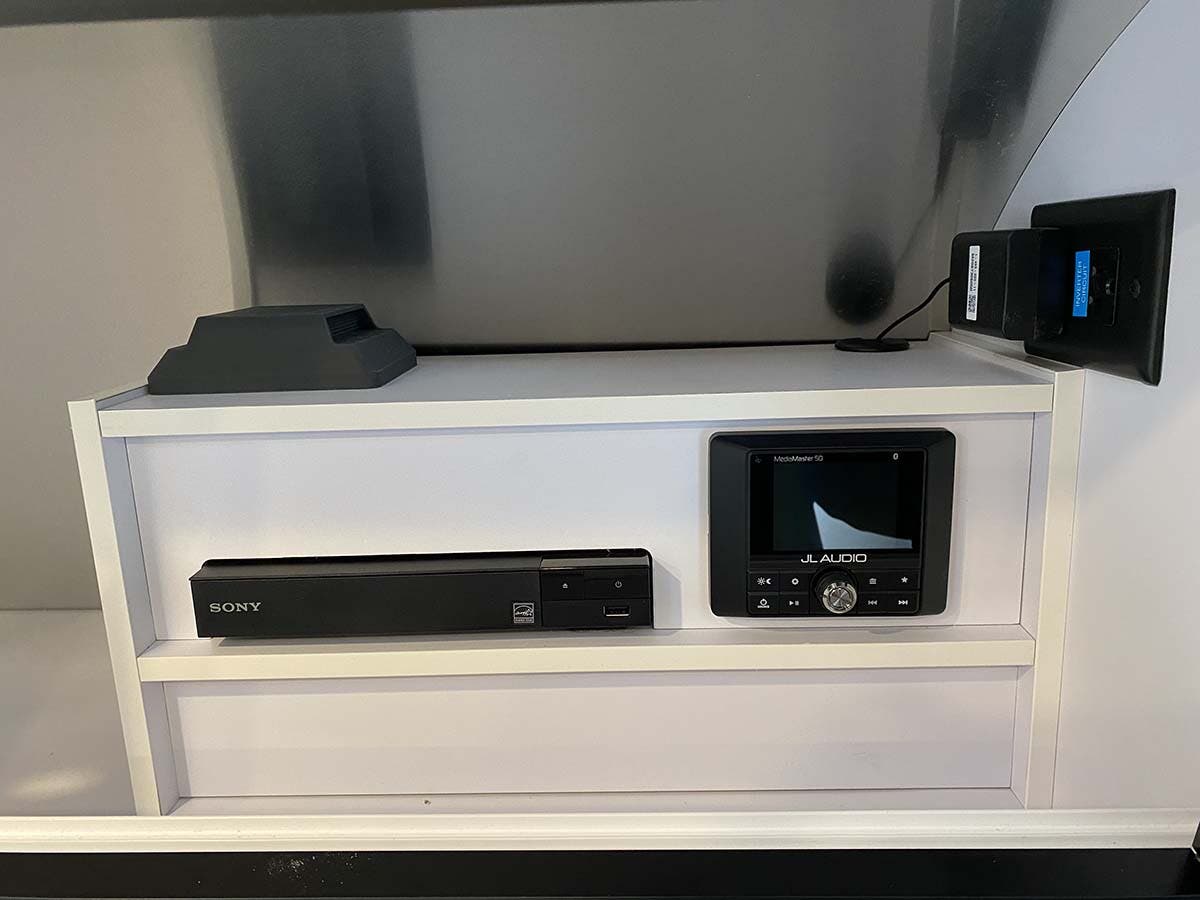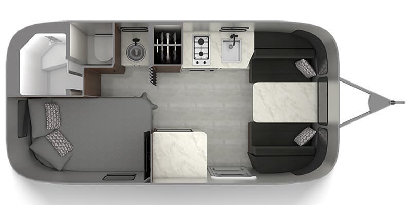 Semi-Monocoque Aluminum Superstructure • Fluorocarbon Treated UV Protected Aluminum Exterior • Temperature Reducing One Piece White Aluminum Roof • Thermal Barrier Protection Between Interior & Exterior • Handcrafted Welded Extruded Aluminum Window Frames • Tempered Tinted Windows with Double Cam Latching System • Manual Zip Dee® Patio Awning with Sunbrella® Fabric • Zip Dee® Rear & Roadside Window Awning with Sunbrella® Fabric • LED Dimmable Patio Awning Light • Polished Bumper with Storage • LP (2 – 20 lb. Steel Tanks) with Auto 2-stage Regulator • Aluminum Removable LP Cover • 2 Deep Cycle Group 24 Battery with Multi-Stage Converter • Exterior LP Low Pressure Gas Grill Connection • Solar Front Window Protection • Stainless Steel Front Stone Guard Protection • Exterior Shower with Hot & Cold Water • Lockable Fresh Water Tank Inlet • City Water Inlet with Water Pressure Regulator • Black Tank Flush System • Hand Painted Chassis • Torsion Axle Suspension • Shock Absorber • Powered Hitch Jack with Light • 4 Manual Heavy Duty Stabilizer Jacks • Goodyear® Endurance ST225/75R15 Tires, Balanced • Stylized Aluminum Wheels • Nev-R-Lube® Sealed Bearings • Nev-R-Adjust® Brakes • Spare Tire – Full Size • Solar Pre-wire (3 Rooftop & 1 Front Access Points) • 90w Solar Package with Interior Monitor and AGM Battery (Optional) • Rear View Monitoring System • Cable TV Hookup • Dedicated Waste Hose Storage • Custom Aluminum Handcrafted 26 in. Wide Entry Door with Window • Aluminum Entry Door Handle • Unique Front Door Key with Heavy Duty Deadbolt • Cast Aluminum Door Hinges • Thule Aluminum Entry Step • LED Entrance Light • LED Tank Service Light • LED Storage Compartment Light • Cast Aluminum LED Tail Lights • License Plate Bracket with LED Light • Enclosed Aluminum Insulated Heated Underbelly • Seamless Composite Flooring