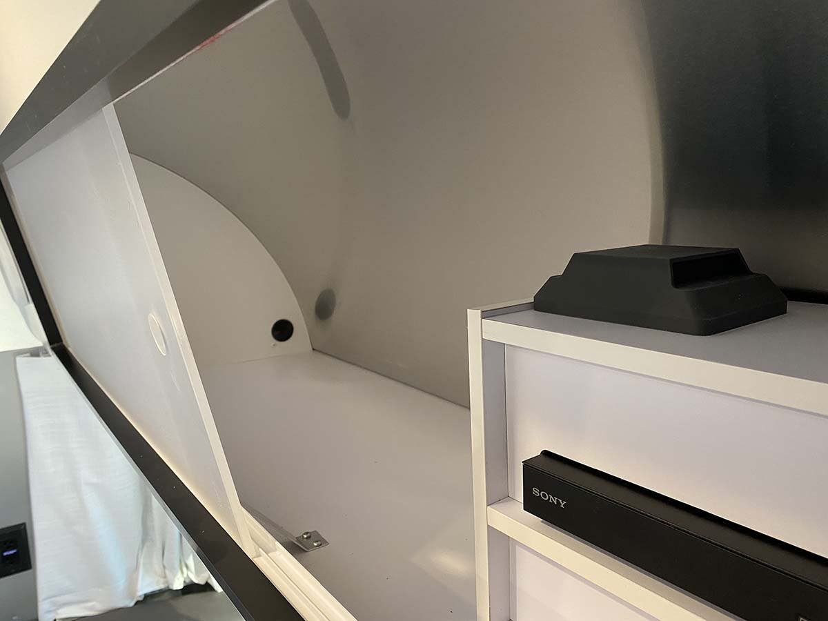 Pillow Top Memory Foam Mattress • Quilted Bedspread • Decorative Throw Pillows • Sleeping Pillows • Reading LED Lights • Under Bed Storage • Overhead Storage with Sliding Doors • Wardrobe with Hanging Bar • LED HD TV (Shared with Lounge) • Blackout Curtain(s)