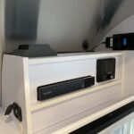 3 Burner Gas Cooktop (20, 22); 2 Burner Gas Cooktop (16, 19) • Baraldi Cooking Vent with Light • Laminate Galley Top • Stainless Steel Sink • Laminate Dinette Top • Ultraleather® Dinette Cushions • Dinette Converts to a Lounge and Sleeping Accommodations • Flatware Organizer • JL Stereo with Bluetooth®, Surround Sound and Subwoofer • LG LED HD TV with Omni Directional Antenna • Blu-Ray™ DVD Player • Aluminum Roller Blinds • Moen® Faucet