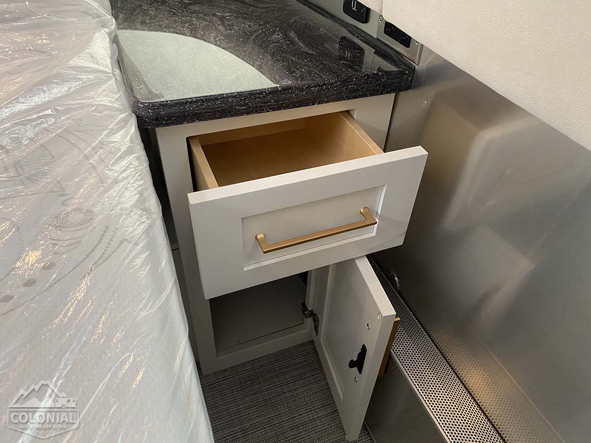 Semi-Monocoque Aluminum Superstructure • Fluorocarbon Treated UV Protected Aluminum Exterior • Temperature Reducing One Piece White Aluminum Roof • Thermal Barrier Protection Between Interior and Exterior • Handcrafted Welded Extruded Aluminum Window Frames • Tempered Tinted Windows with Double Cam Latching System • Powered ZipDee® Patio Awning with Sunbrella® Fabric • ZipDee® Rear & Roadside Window Awning with Sunbrella® Fabric • Seamless Composite Flooring • LED Dimmable Patio Awning Light • Polished Bumper with Storage • LP (2 – 40 lb. Aluminum Tanks) with Auto 2-stage Regulator • Classic Aluminum Removable LP Cover, LP Monitoring System • 2 AGM Batteries with Multi-Stage Converter • Exterior LP Gas Low Pressure Grill Connection • Solar Front Window Protection • Stainless Steel Front Stone Guard Protection • Stainless Steel Exterior Shower with Hot & Cold Water • Stainless Steel Lockable Fresh Water Tank Inlet • City Water Inlet with Water Pressure Regulator • Black Tank Flush System • Hand Painted Chassis • Torsion Axle Suspension • Shock Absorber • Powered Hitch Jack with Light • 4 Powered Heavy Duty Stabilizer Jacks with Stainless Steel Lockable Compartment • Michelin® LT225/75R16 Tires, Balanced • Stylized Aluminum 16″ Wheels • Nev-R-Lube® Sealed Bearings • Nev-R-Adjust® Brakes • Spare Tire – Full Size • 270w Solar Package with Interior Monitor • Rear View Monitoring System • Cable TV Hookup • Satellite TV Hookup • Dedicated Waste Hose Storage • LED Lit Entry Door Handle • Custom Aluminum Handcrafted 26″ Wide Entry Door with Window • Unique Front Door Key with Heavy Duty Deadbolt • Cast Aluminum Door Hinges • Airstream Custom Aluminum Entry Step • LED Entrance Light • LED Tank Service Light • LED Storage Compartment Light • Cast Aluminum LED Tail Lights • License Plate Bracket with LED Light • Enclosed Aluminum Insulated Heated Underbelly