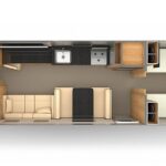 Stainless Steel 3 Burner Cooktop (LP Gas) with Glass Top • Baraldi Cooking Vent with Light • Dupont Corian® Galley Top • Stainless Steel Kohler® Sink with Dupont Corian® Sink Cover • Dupont Corian® Dinette Top • Ultraleather® Lounge and Dinette Seating • Powered Convertible Dinette for Sleeping Accommodations • Flatware Organizer • Fusion Touchscreen Stereo with Wifi, Apple Airplay & Bluetooth® Connectivity, Over-the-Air Software Updates, SiriusXM, Fusion App • Surround Sound and Subwoofer • Smart 32″ LED HD TV* • 60″ Power Screen Smart LG HD Projection TV with Bose Sound Bar** • Blu-Ray™ DVD Player • Omni-Directional Antenna • Day and Night Shades (Lounge Shades are Powered in the 33FB) • Kohler® Faucet