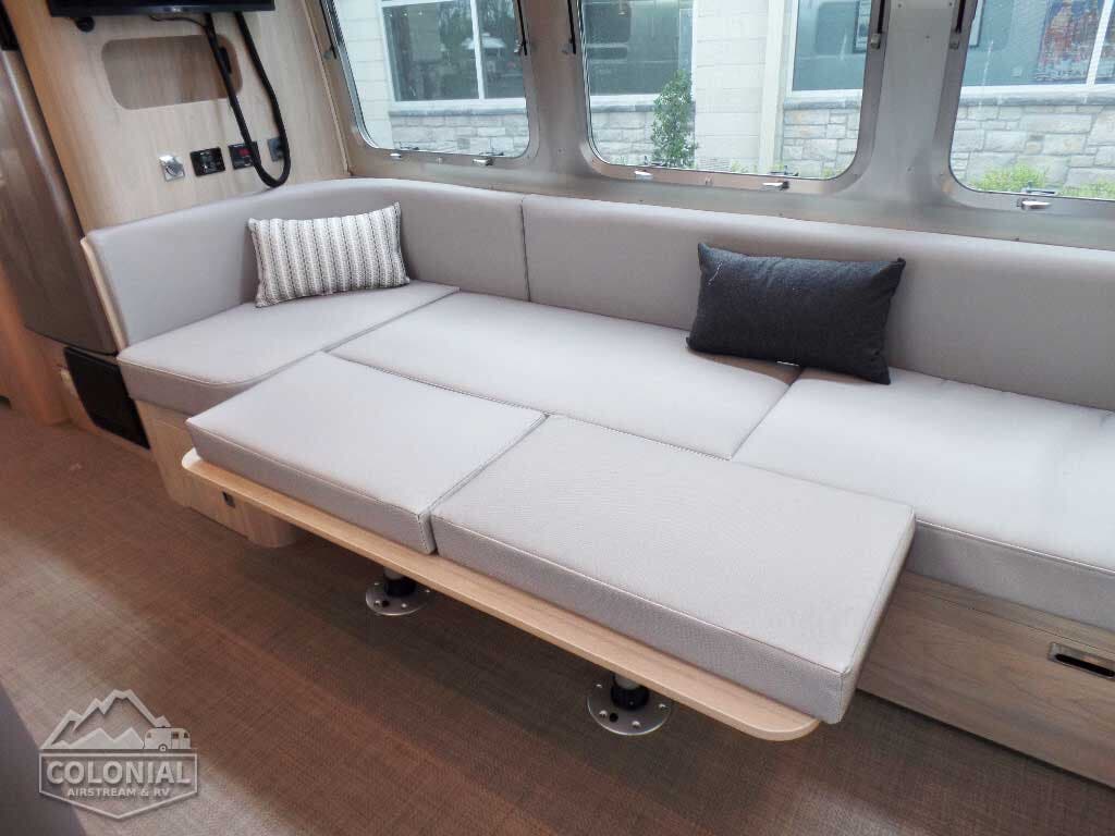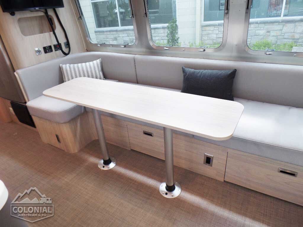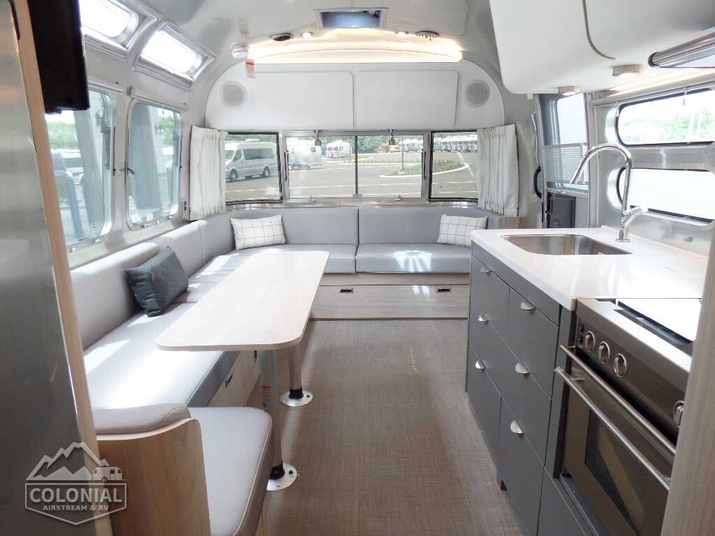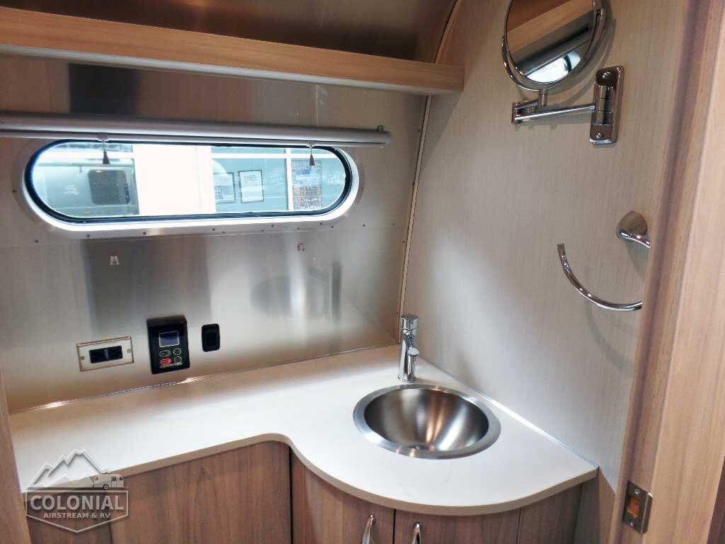 Complete Aluminum Interior Walls and Ceiling • Quietstream™ A/C with Heat Pump & Electronic Thermostat • Fantastic© Fan with Thermostat & Automatic Rain Sensor • Probeless Tank Monitoring System • EcoBatt™ Insulation • Handcrafted Aluminum Screen Door with Guards • Panoramic Front Windows with Blackout Shades • Handcrafted Italian Lite-Ply Laminated Cabinetry • Seamless Vinyl Flooring • LED Interior Lighting with Dimmer • Tankless On Demand LP Water Heater • Overhead Storage with Heavy Duty Hinges • 1000W Pure Sine Inverter • Coat & Key Hooks • Airstream Connected Pre-wire