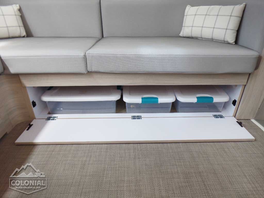 Choice of Either Queen or Twin Beds in 25′ and Larger Models • Front Bunk Bed option (25FB and 27FB only) • Pillow Top Memory Foam Mattress • Quilted Bedspread • Decorative Throw Pillows • Sleeping Pillows • Reading LED Lights • Under Bed Storage • Overhead Storage with Heavy Duty Hinges • Wardrobe with Hanging Bar • LG LED HD TV (Single Sharable TV in 23’ models) • Blackout Curtain(s)