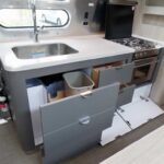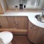 3 Burner Cooktop (LP Gas) • Baraldi Cooking Vent with Light • Laminate Galley Top • Stainless Steel Sink • Laminate Dinette Top • Ultraleather® Lounge and Dinette Seating • Dinette Converts to a Lounge and Sleeping Accommodations • Pull out Lounge for Sleeping Accommodations (Models w/Lounge) • Flatware Organizer • JL Stereo with Bluetooth®, Surround Sound and Subwoofer • LG LED HD TV with Omni Directional Antenna • Blu-Ray™ DVD Player • Aluminum Roller Blinds • Delta® Faucet