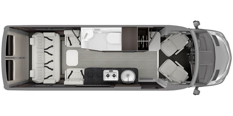 Signature Aluminum Ceiling & Trim • Matte Finish Laminate Cabinetry • Flush-Mount & Solid Shut Cabinets • Ultraleather Seating • Vinyl w/Urethane Covering on Walls & Windows • Power Window Shades • Riveted Aluminum Porthole Door • Pantry with Built-in Drawers and Shelves • Marine Woven Synthetic Flooring • Adjustable LED Lighting • Modular Solid Surface Table (1) • LED Widescreen HDTVs (2) • Power Rear Sofa Converts to Lay Flat Bed • Power Ottomans • USB Charging Ports • Fantastic Fan with Rain Sensor • Rear Cabin Carpet Kit (Black) • Interior Height 6’ 2.25” • Interior Width 5’ 10”