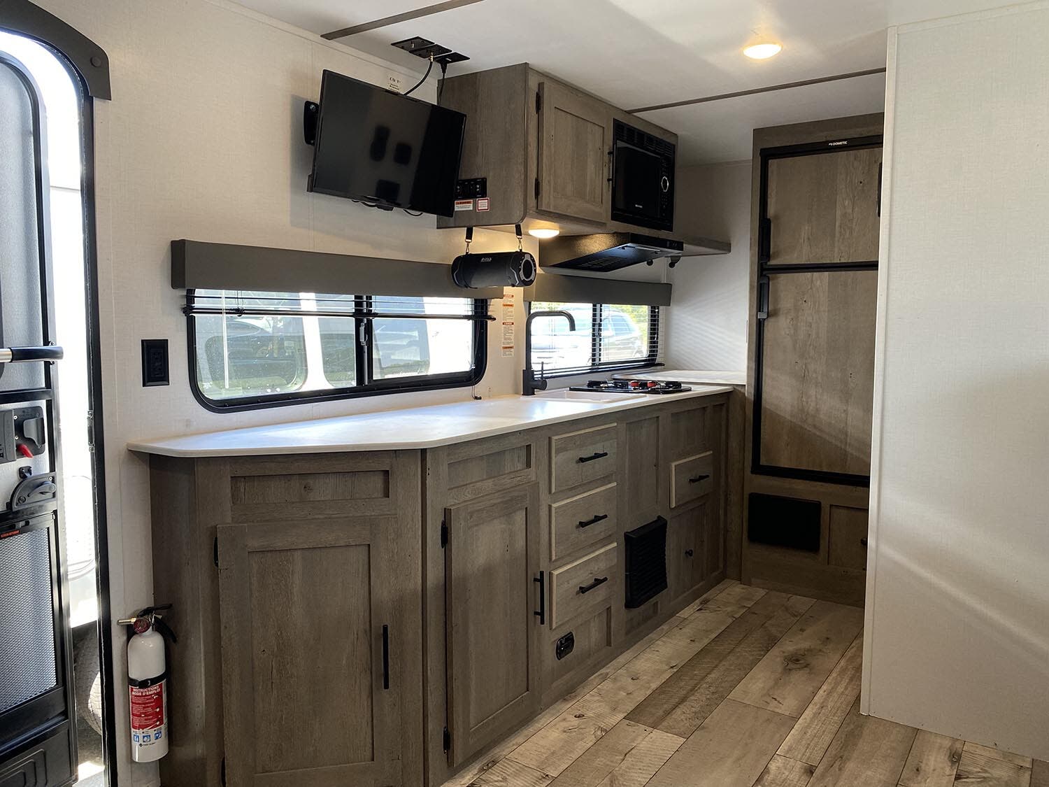 LED Lighting • Portable Bluetooth speaker • Microwave • Single-basin under mount sink • cable TV hookup w/booster • Quick recovery 6-gallon DSI water heater • 12V 55AMP converter