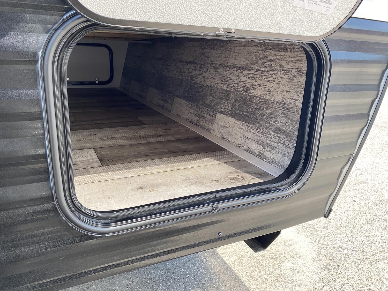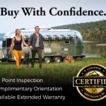 Friction hinge entry doors • Mega pass-through storage compartment • Dexter E-Z Lube axles • E-Coated corrosion-resistant wheels • Seamless, one piece TPO Roof membrane • Micro Diamond Plate Rock Guard • LCI Solid double step • Extended rain gutters