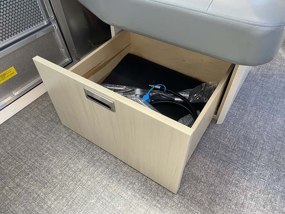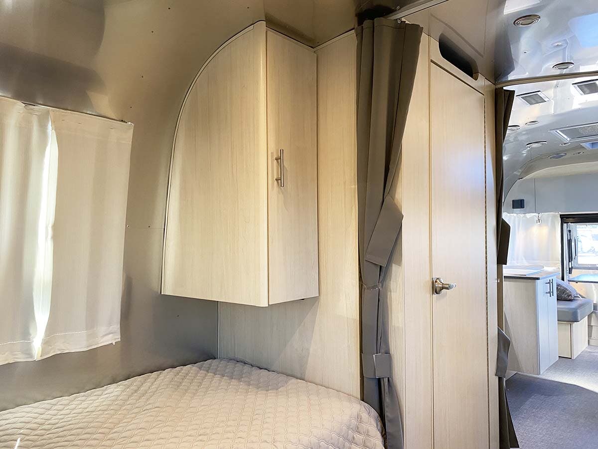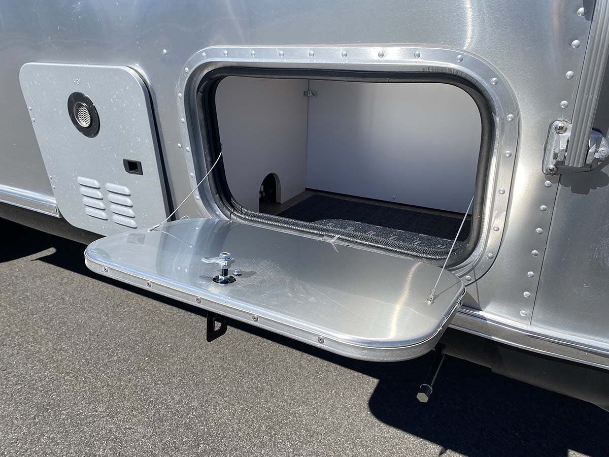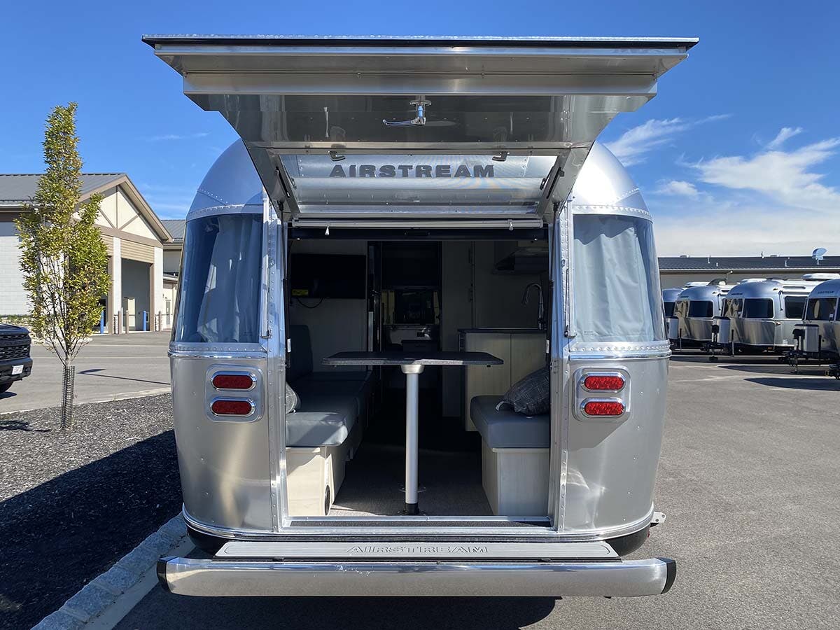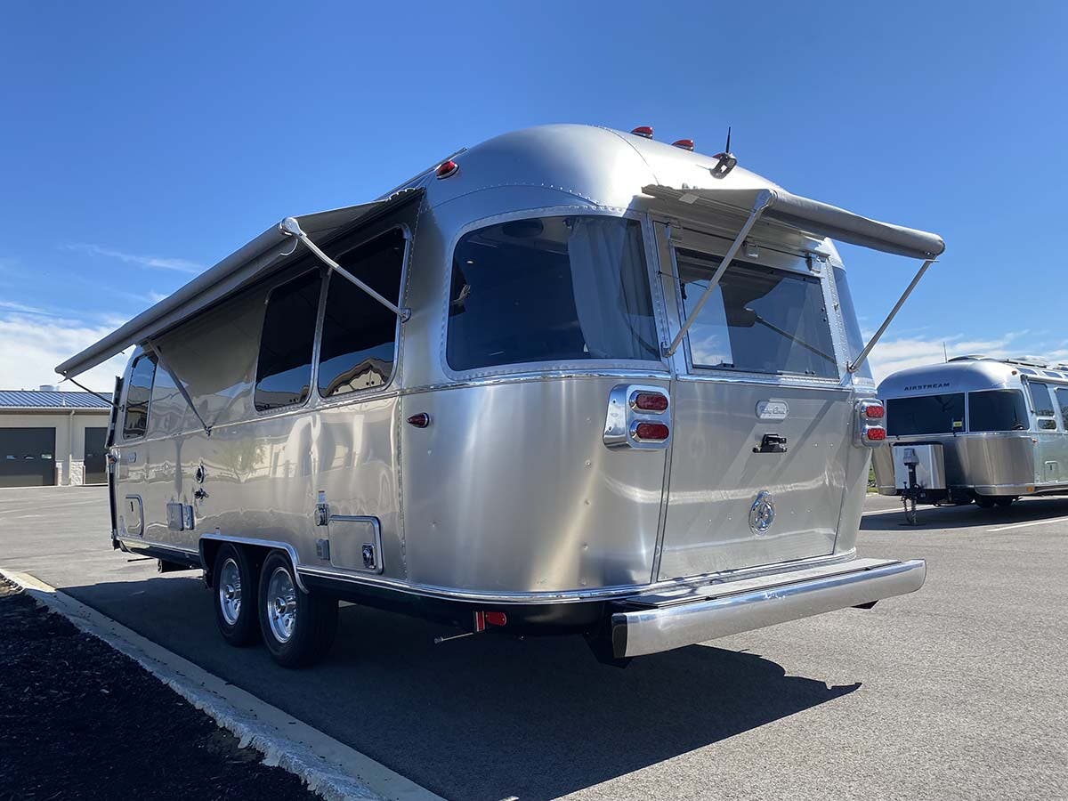 Seamless Composite Flooring • Semi-Monocoque Aluminum Superstructure • Fluorocarbon Treated UV Protected Aluminum Exterior • Temperature Reducing One Piece White Aluminum Roof • Thermal Barrier Protection Between Interior and Exterior • Handcrafted Welded Extruded Aluminum Window Frames • Tempered Tinted Windows with Double Cam Latching System • Manual ZipDee® Patio Awning with Sunbrella® Fabric • ZipDee® Rear & Roadside Window Awning w/Sunbrella® Fabric (Optional) • LED Dimmable Patio Awning Light • Polished Bumper with Storage • LP (2 – 30 lb. Steel Tanks) with auto 2-stage regulator • Aluminum Removable LP Cover • Multi-Stage Converter • Exterior LP Gas Low Pressure Grill Connection • Solar Front Window Protection • Stainless Steel Front Stone Guard Protection • Exterior Shower with Hot & Cold Water • Lockable Fresh Water Tank Inlet • City Water Inlet with Water Pressure Regulator • Black Tank Flush System • Hand Painted Chassis • Torsion Axle Suspension • Shock Absorber • Powered Hitch Jack with Light • 4 Manual Heavy Duty Stabilizer Jacks • Goodyear® Endurance ST225/75R15 Tires, Balanced • Stylized Aluminum Wheels • Nev-R-Lube® Sealed Bearings • Nev-R-Adjust® Brakes • Spare Tire – Full Size • Solar Pre-wire (Rooftop & Front Access Points) • 90w Solar Package w/ Interior Monitor & AGM Battery option (23′ models) • 180w Solar Package w/Interior Monitor & AGM Battery option (25′-30′ models) • Rear View Monitoring System • Cable TV Hookup • Satellite TV Hookup • Dedicated Waste Hose Storage • Custom Aluminum Handcrafted 26″ Wide Entry Door w/Window • Aluminum Entry Door Handle • Unique Front Door Key with Heavy Duty Deadbolt • Cast Aluminum Door Hinges • Airstream Custom Aluminum Entry Step • Aluminum Rear Hatch with Screen option (25FB and 27FB only) • LED Entrance Light • LED Tank Service Light • LED Storage Compartment Light • Cast Aluminum LED Tail Lights • License Plate Bracket with LED Light • Enclosed Aluminum Insulated Heated Underbelly