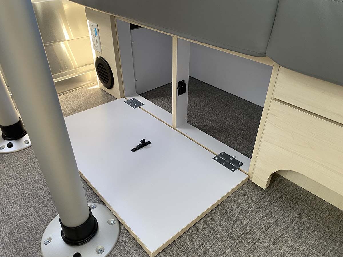Complete Aluminum Interior Walls and Ceiling • Quietstream™ A/C with Heat Pump & Electronic Thermostat • Fantastic© Fan with Thermostat & Automatic Rain Sensor • Probeless Tank Monitoring System • EcoBatt™ Insulation • Handcrafted Aluminum Screen Door with Guards • Panoramic Front Windows with Blackout Shades • Handcrafted Italian Lite-Ply Laminated Cabinetry • Seamless Vinyl Flooring • LED Interior Lighting with Dimmer • Tankless On Demand LP Water Heater • Overhead Storage with Heavy Duty Hinges • 1000W Pure Sine Inverter • Coat & Key Hooks • Airstream Connected Pre-wire