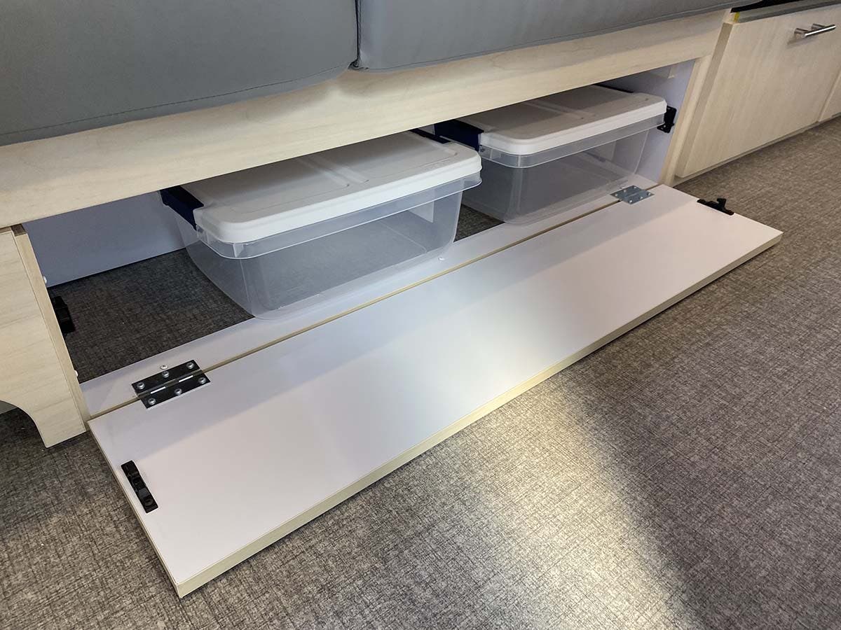 Choice of Either Queen or Twin Beds in 25′ and Larger Models • Front Bunk Bed option (25FB and 27FB only) • Pillow Top Memory Foam Mattress • Quilted Bedspread • Decorative Throw Pillows • Sleeping Pillows • Reading LED Lights • Under Bed Storage • Overhead Storage with Heavy Duty Hinges • Wardrobe with Hanging Bar • LG LED HD TV (Single Sharable TV in 23’ models) • Blackout Curtain(s)
