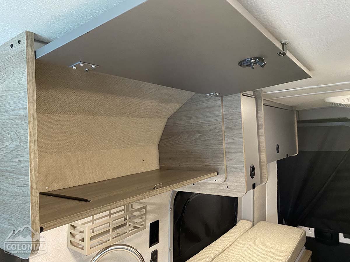 Murphy+ bed w/mattress cover and access to below floor storage • Slat bed system • Deluxe powered ventilator fan • Movable table (only available w/Murphy+ bed option)
