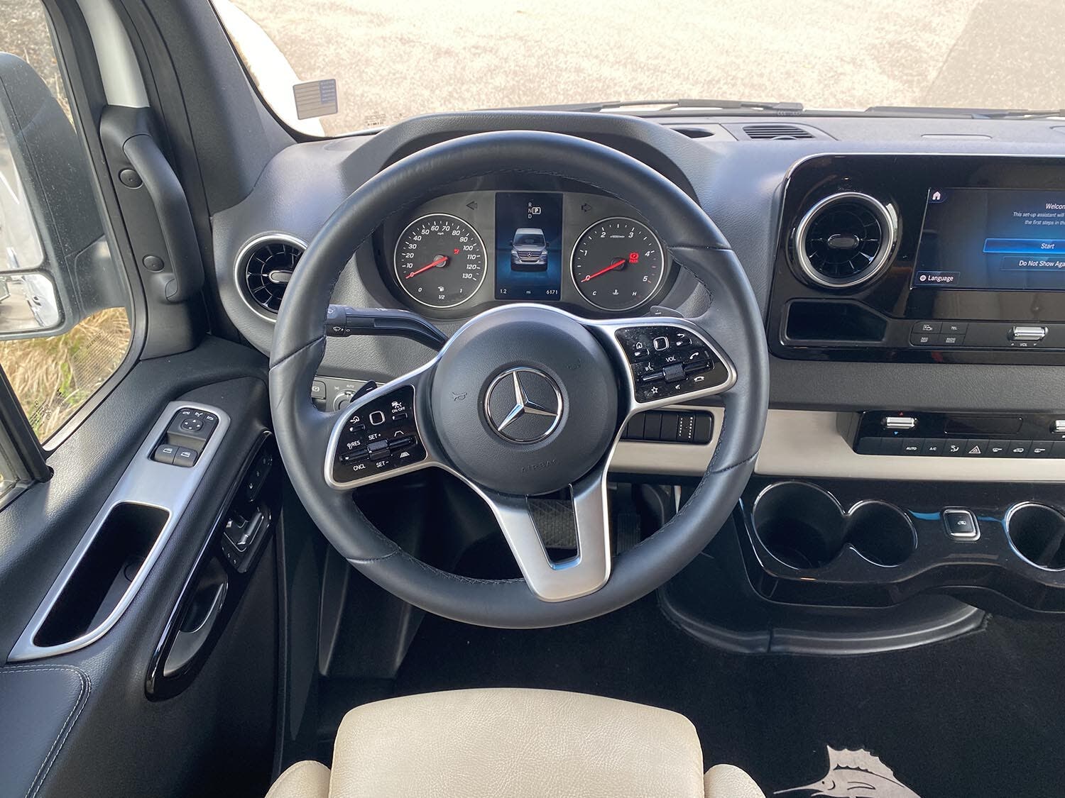 Power Adjustable Heated Driver/Passenger Seats • Advanced Multifunctional Steering Wheel • Push Button Keyless Start • Steering Wheel Paddle Shifters • Entry Door Lighting • In-Dash Wireless Cell Phone Charging • Overhead Map Lights • In-Dash Maintenance Monitoring System • MBUX Infotainment System (Mercedes-Benz User Experience) touch screen, pinch, zoom, voice recognition, Apple Carplay, Android capability • Rear View Camera Monitor • Custom Carpet Floor Mats • Privacy Shades • Rear Cabin Carpet Kit (Optional)