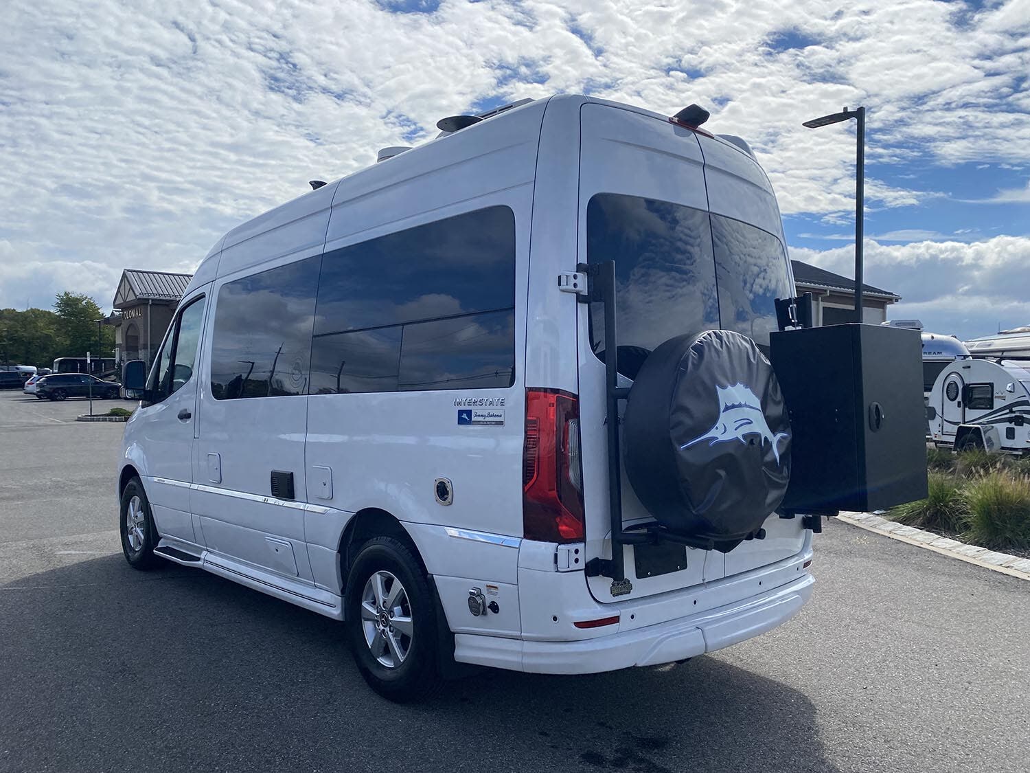 Full Body Kit • Hidden Hitch Cover Rear Bumper • Fog Lamps • Mercedes-Benz Aluminum Wheels • High Performance Headlights • Power Heated Mirrors • Power Armless Awning w/Auto Retract • Power Entry Step (sliding side door) • LED Lighting – patio, service box locations, adjustable awning, under carriage • Locking Service Boxes • Exterior Shower with Hot & Cold Water • LP Accessory Hook-up (Grill) • Power Rear Screen • Side Screen Door • Power Sliding Door