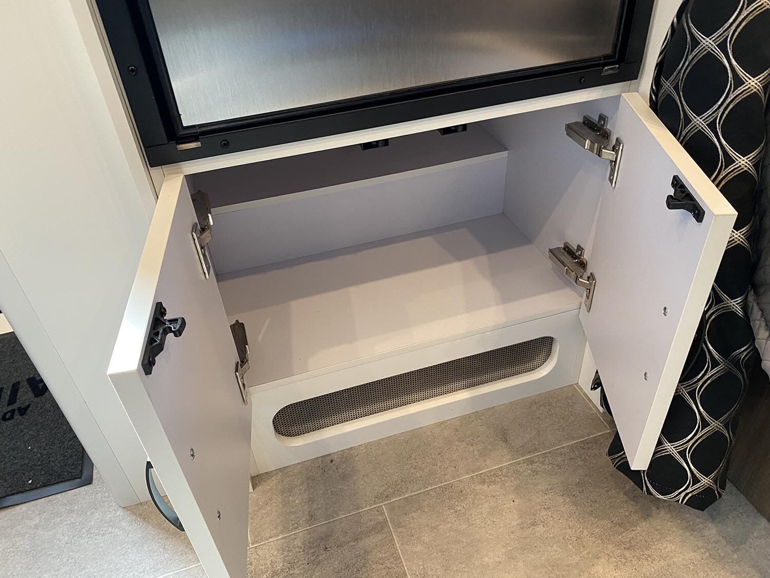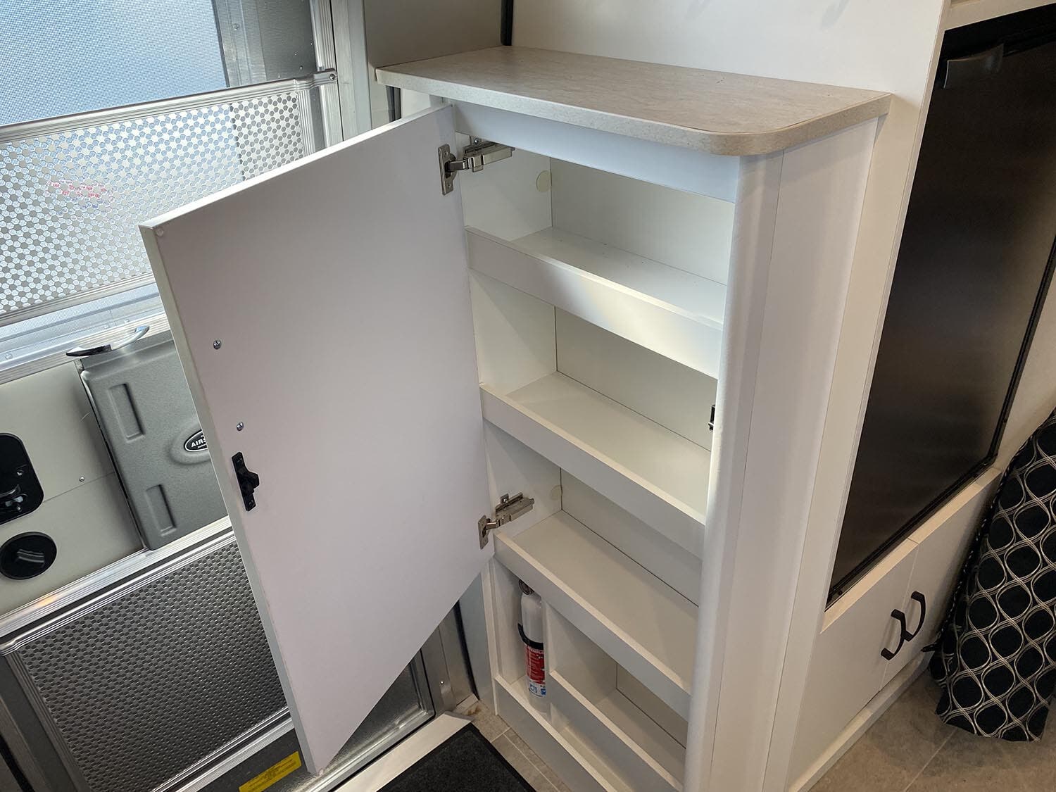 Complete Aluminum Interior Walls and Ceiling • Quietstream™ A/C with Heat Pump & Electronic Thermostat • Fantastic© Fan with Thermostat & Automatic Rain Sensor • Probeless Tank Monitoring System • EcoBatt™ Insulation • Handcrafted and Welded Aluminum Screen Door with Guards • Panoramic Front Windows with Blackout Shades • Handcrafted Italian Lite-Ply Laminated Cabinetry • Seamless Vinyl Flooring • LED Interior Lighting with Dimmer • Overhead Storage with Sliding Doors • Electric/LP Water Heater (6 gal.; 9 gal. production) • 2000W Pure Sine Inverter • Coat & Key Hooks