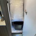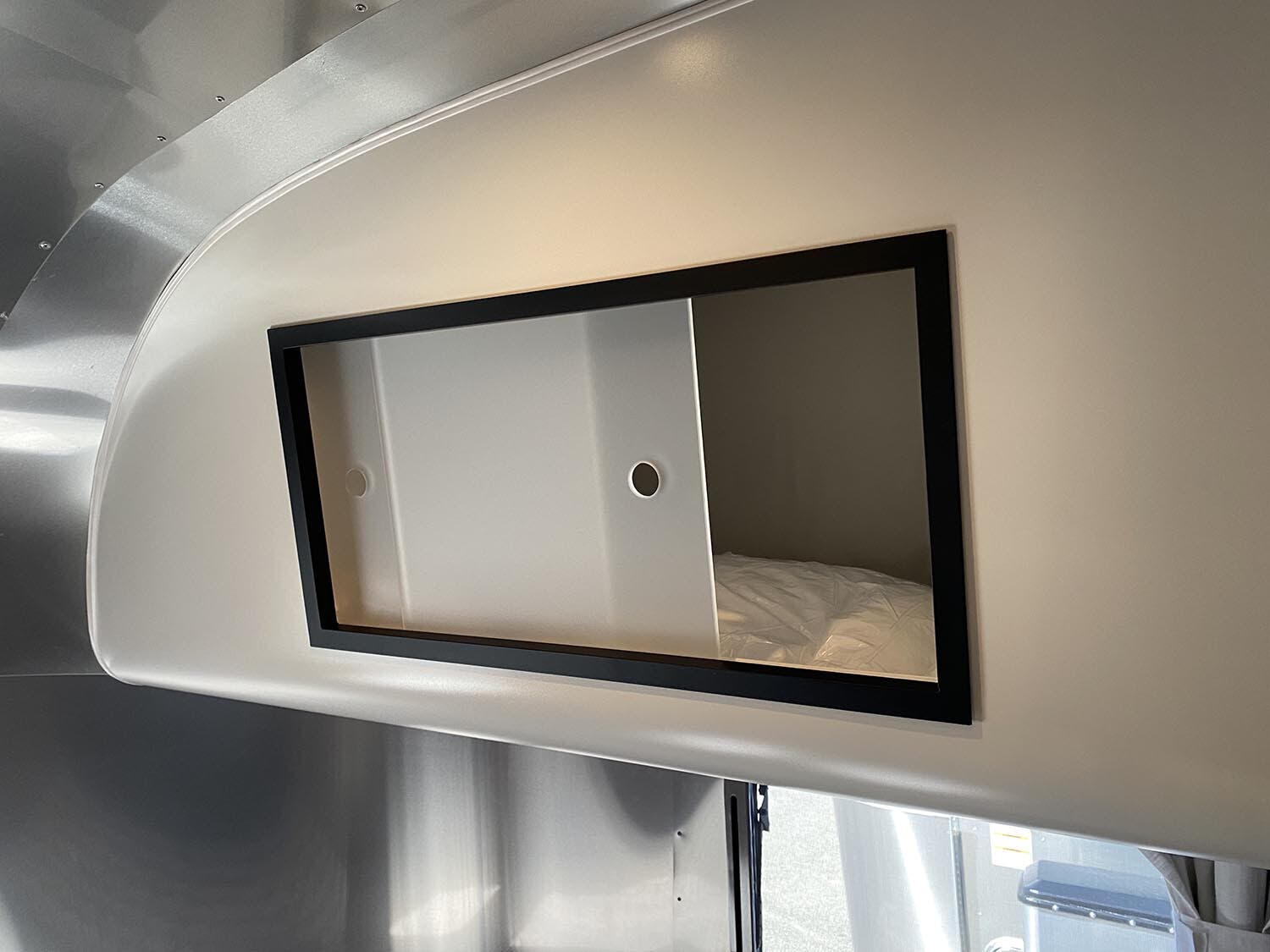 Pillow Top Memory Foam Mattress • Quilted Bedspread • Decorative Throw Pillows • Sleeping Pillows • Reading LED Lights • Under Bed Storage • Overhead Storage with Sliding Doors • Wardrobe with Hanging Bar • 12-volt 24” Smart TV W/Bluetooth compatibility (Shared with Lounge) • Blackout Curtain(s)