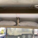 Choice of Either Queen or Twin Beds in 25′ and Larger Models • Front Bunk Bed option (25FB and 27FB only) • Pillow Top Memory Foam Mattress • Quilted Bedspread • Decorative Throw Pillows • Sleeping Pillows • Reading LED Lights • Under Bed Storage • Overhead Storage with Heavy Duty Hinges • Wardrobe with Hanging Bar • 12-volt 24” Smart TV W/Bluetooth compatibility (Single Sharable TV in 23’ models) • Blackout Curtain(s)