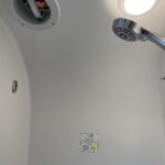 Removable Hand Held Shower Head with Shut Off • Porcelain Toilet • Lavy Sink • Roof Vent/Fan • Towel Bar/Ring • Retractable Clothes Line in Shower • Delta® Faucet